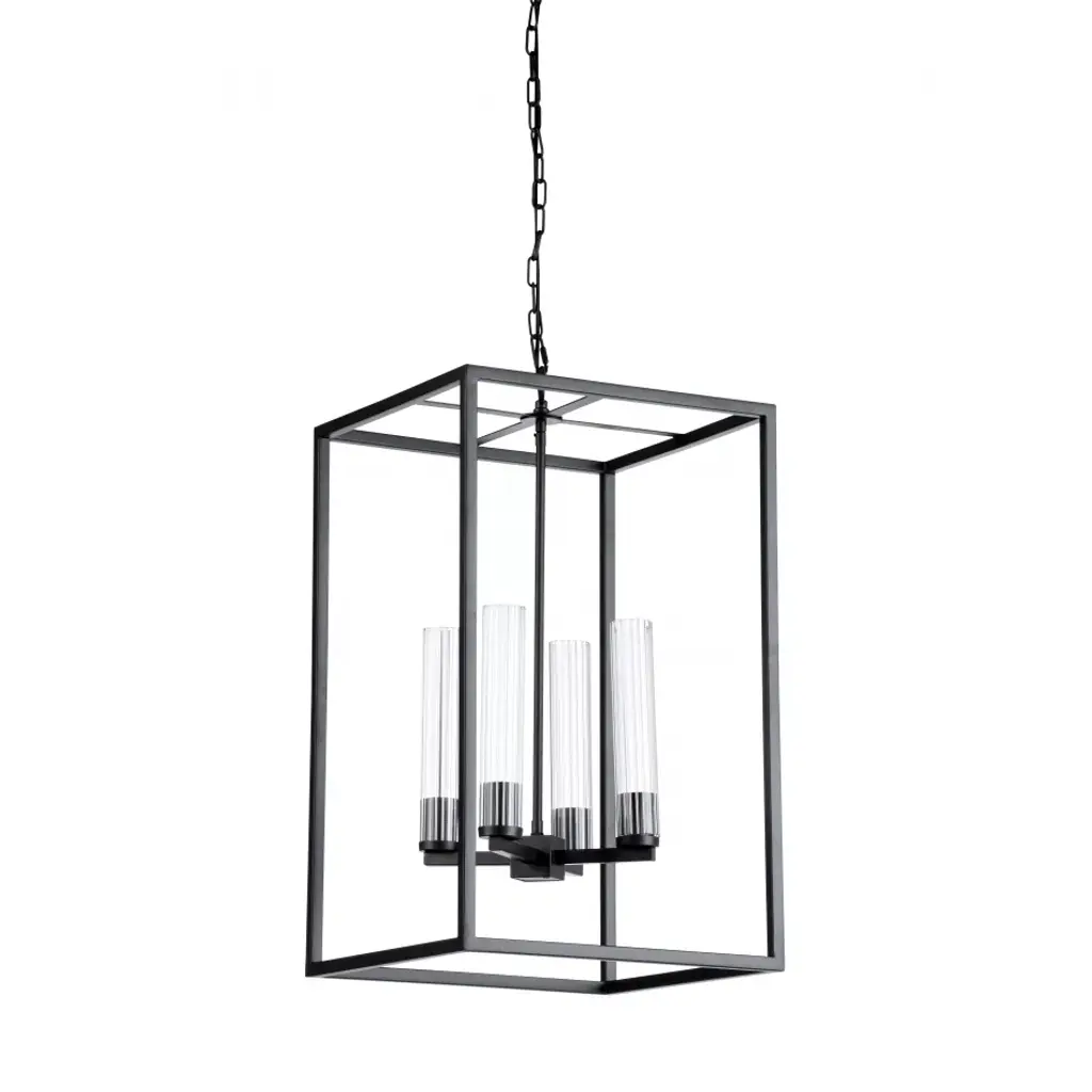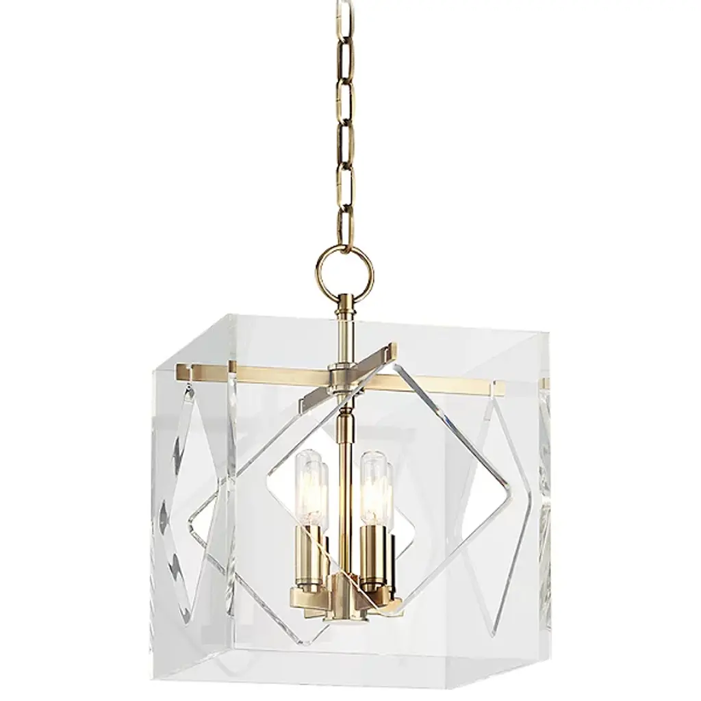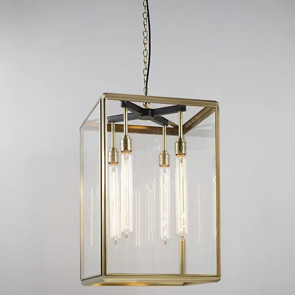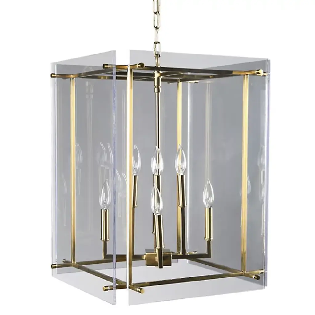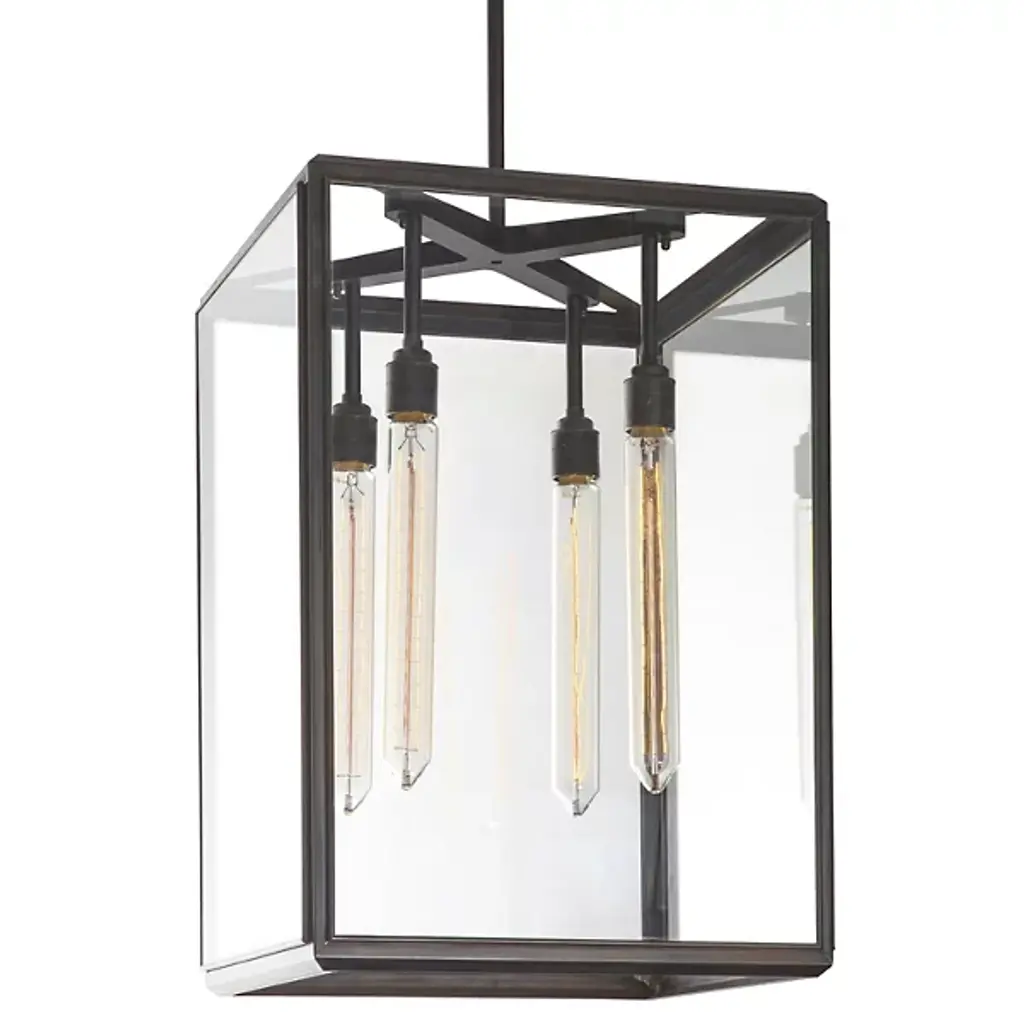 The Hazel Pendant from J. Adams & Co. features a curved hook over which hangs a series of linked chains. The links collectively join in supporting a box frame of metal backed by glass. The combined materials house a hanging, luminous bulb. The fixture’s geometric shape allows light to disperse from all angles, enhancing visibility throughout your contemporary outdoor seating area. The light’s brightness level can be softened when paired with an ELV dimmer, ideal for days you wish to use the lamp inside your home.