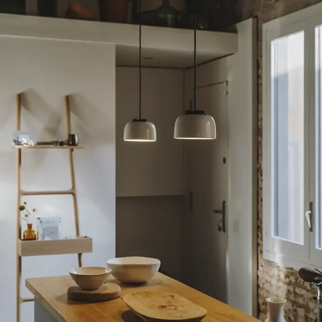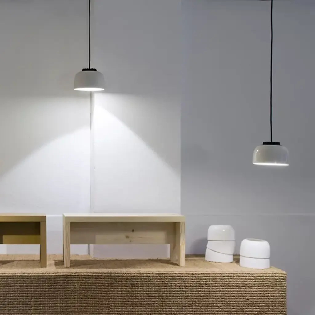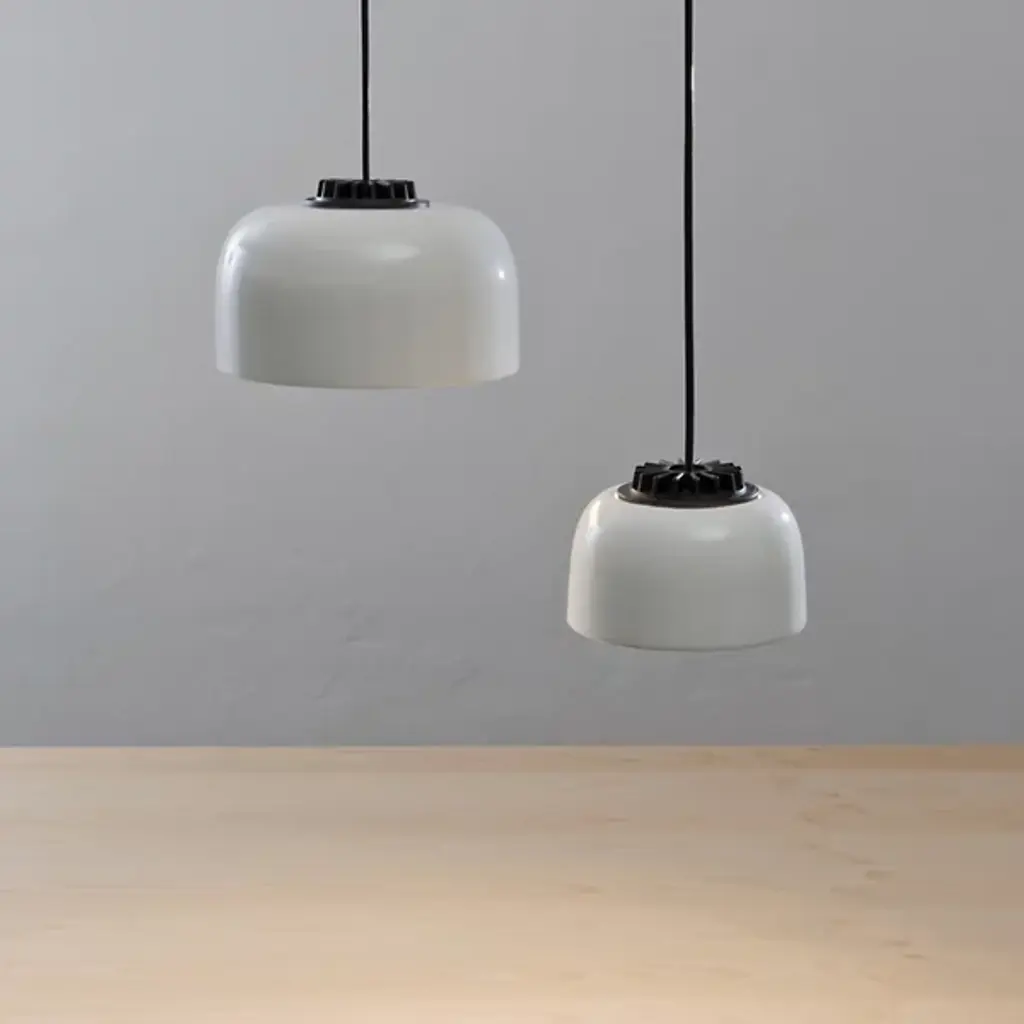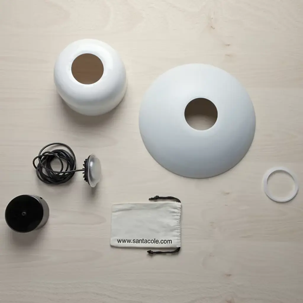 Part of a versatile range of hanging lamps with the same LED module, the Santa & Cole HeadHat Bowl Pendant is a simple bowl shade made from a white ceramic. Specifically designed to fit a range of Santa & Cole pendants, the module is meant to be as easy to install as a traditional light bulb. The light is fully reflected downward, providing a convenient source of illumination above areas that require task light.