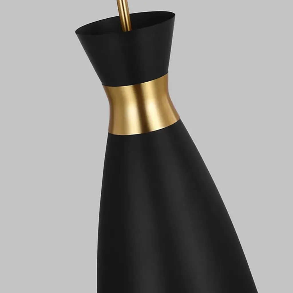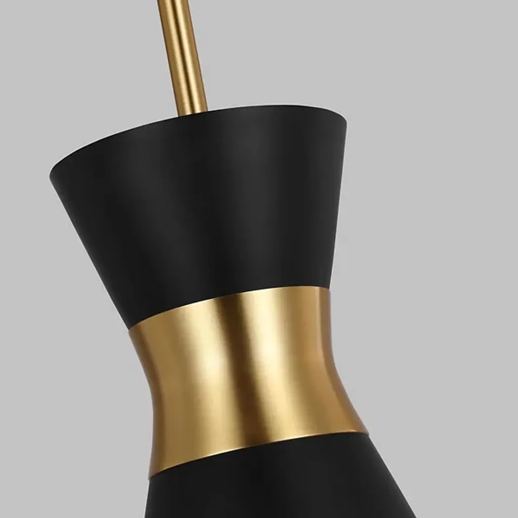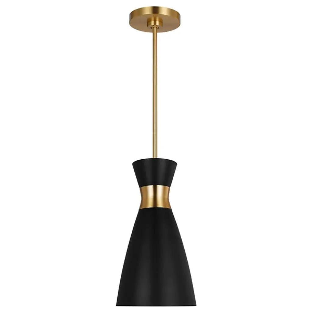 The Heath Mini Pendant is a striking, modern design from ED, a line of products developed by the influential and iconic creative Ellen Degeneres. Burnished brass trim contrasts elegantly against the black steel shade. It hangs from a slender down rod that attaches to the minimal canopy above, all of which has the same burnished brass finish. Light casts down from inside the shade and onto the surface below. This could serve well in many locations regardless of if they are dry or damp.