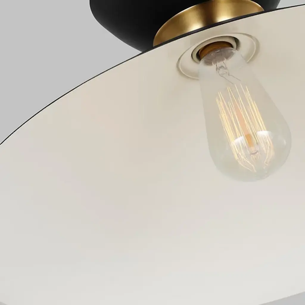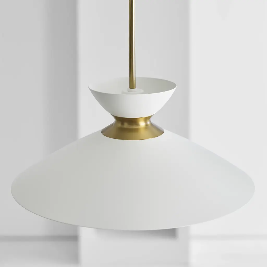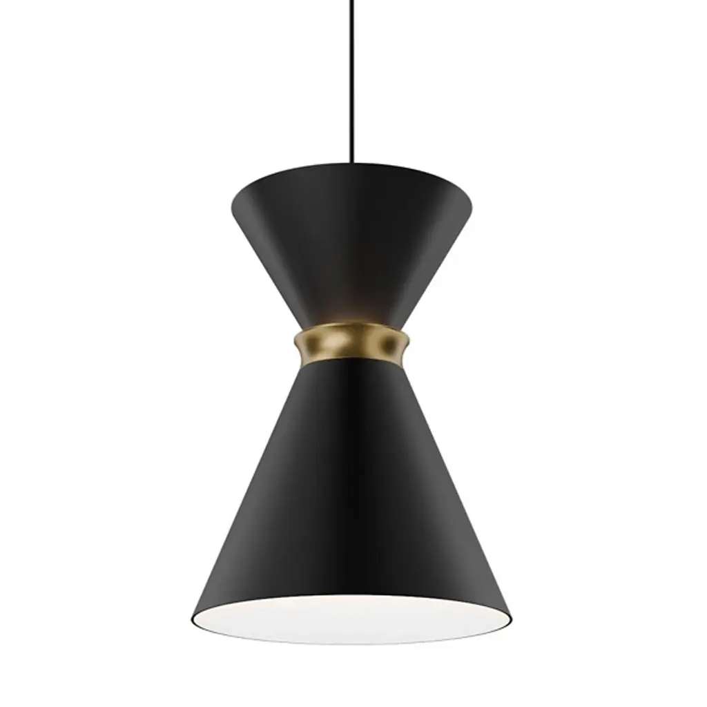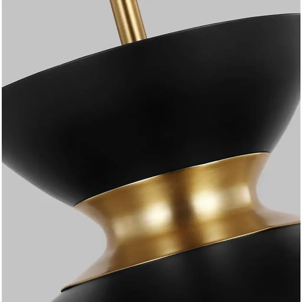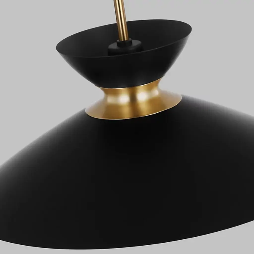 The influential creative Ellen Degeneres presents the Heath Wide Pendant, a modern piece of lighting design. Being released under her high-quality lifestyle brand ED, the pendant has a striking contrast of black steel and burnished brass detailing. A wide black shade hangs from the adjustable stem that attaches to a canopy above. From inside the shade, light casts through the aperture and onto the surface below. This is a piece that fits well in both dry and damp locales, making the options for placement quite vast.