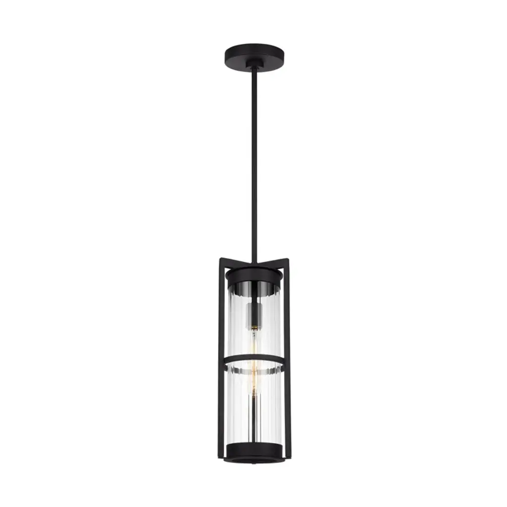 Charming in its simplicity, the Helen Mini Pendant from Alder & Ore brings a welcoming demonstration of light to the rooms of your modern home. Mounting to the ceiling, this piece consists of a round base and a lengthy, thin downrod, each made of smooth metal. The downrod splits into three thin lines that tightly enclose around a cylindrical glass shade that houses a single, downward-facing bulb. The crisp light from the bulb is bright and even, spreading throughout the room with ease.