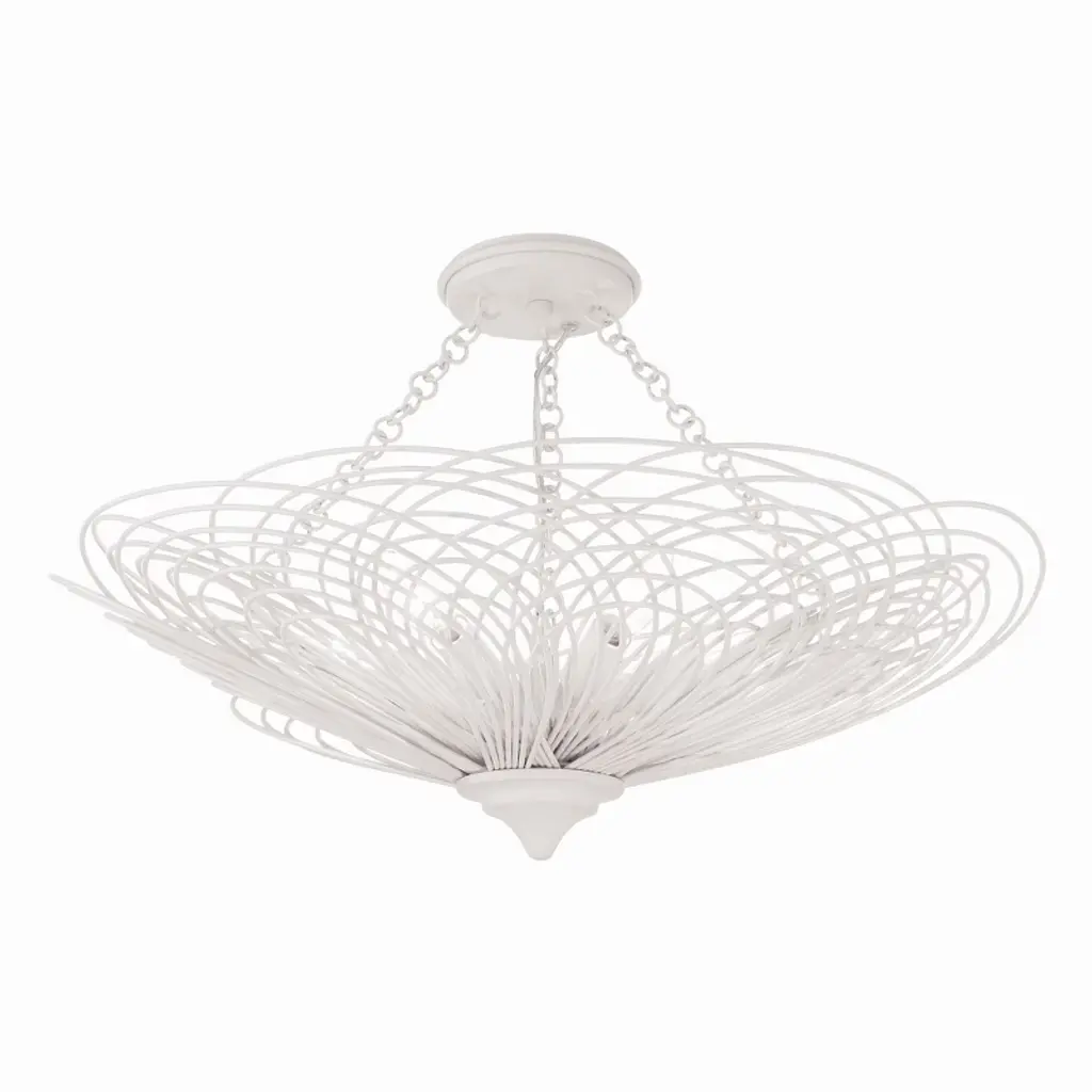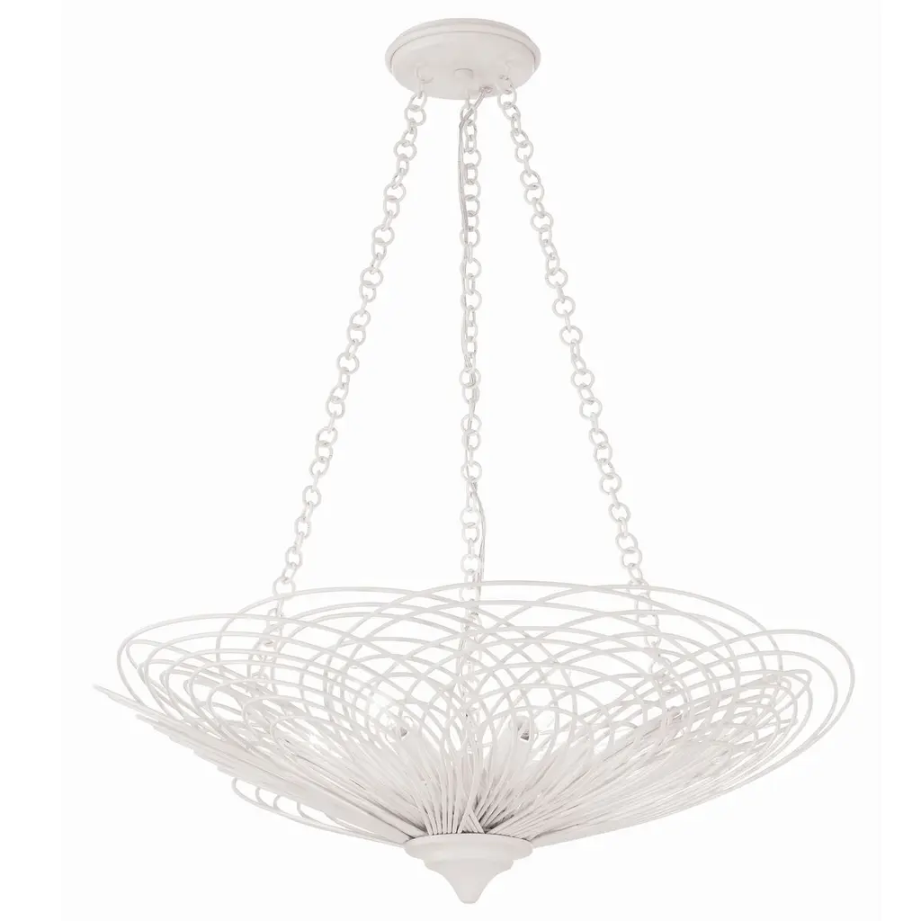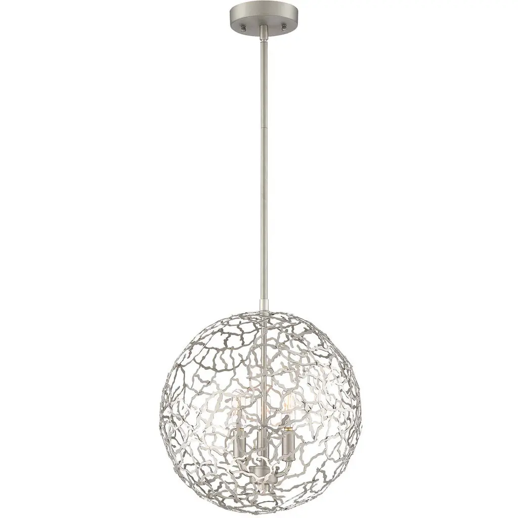 Let the sunshine in with the elegant, transitional lines of the Helios Pendant by Zeev Lighting. Starting with a conventionally arranged disc ceiling mount, it extends a central stem downward to a branching pattern of flat-cut metal, interwoven in a torus shape over the candelabra-style sockets. Best fitted with retro-style bulbs to enhance its intriguing appearance, the lamping is screened slightly above and to the sides for an interesting shadow effect, while the base of the shade is left open for a more functional spread of light below.