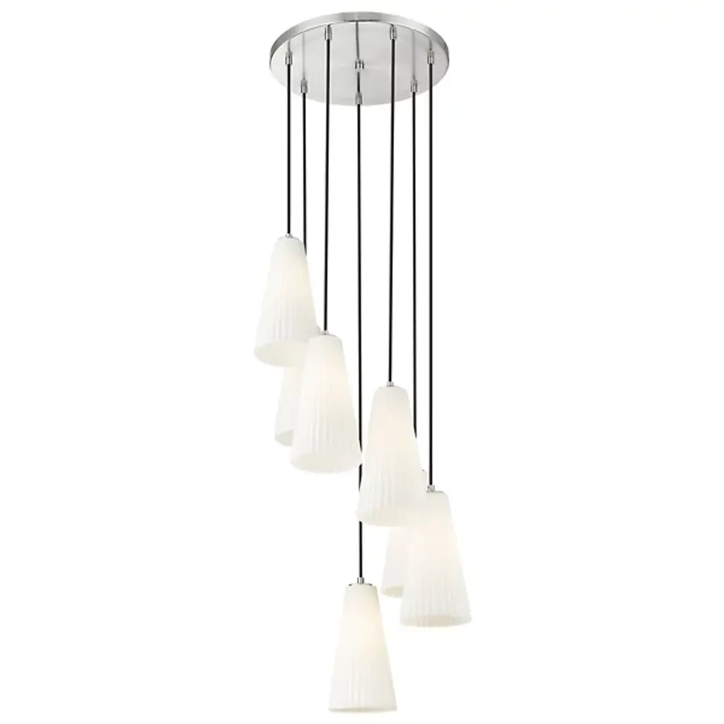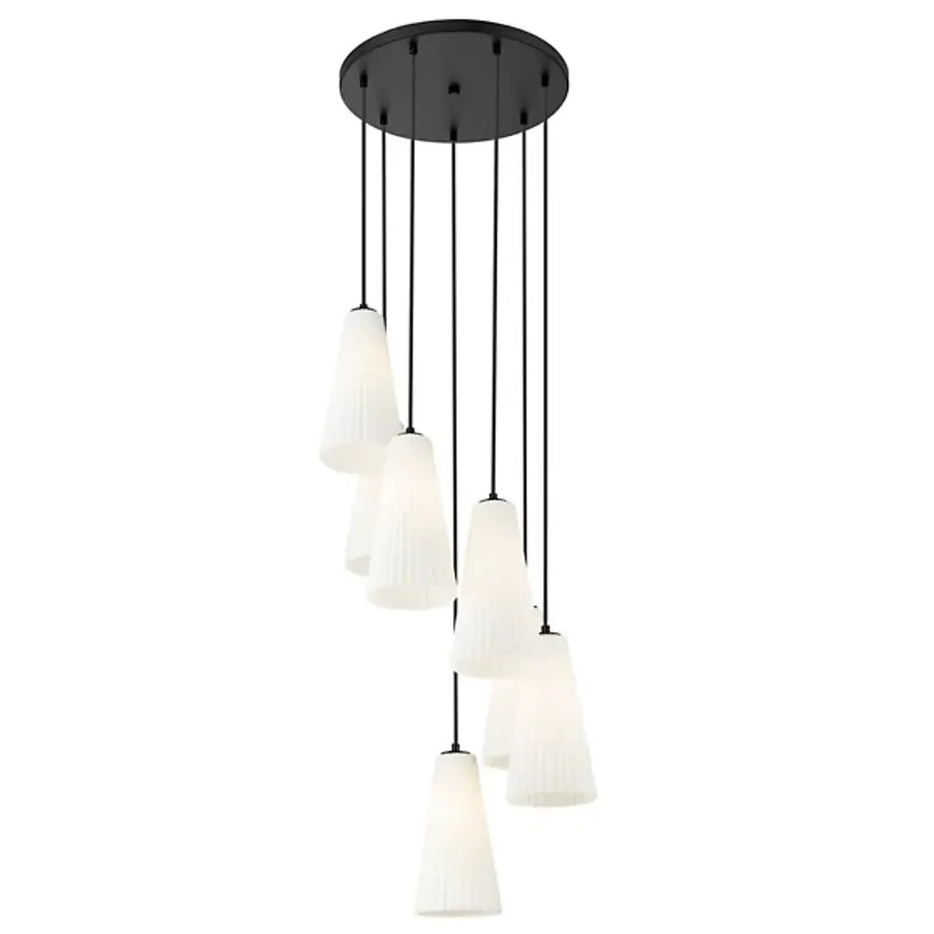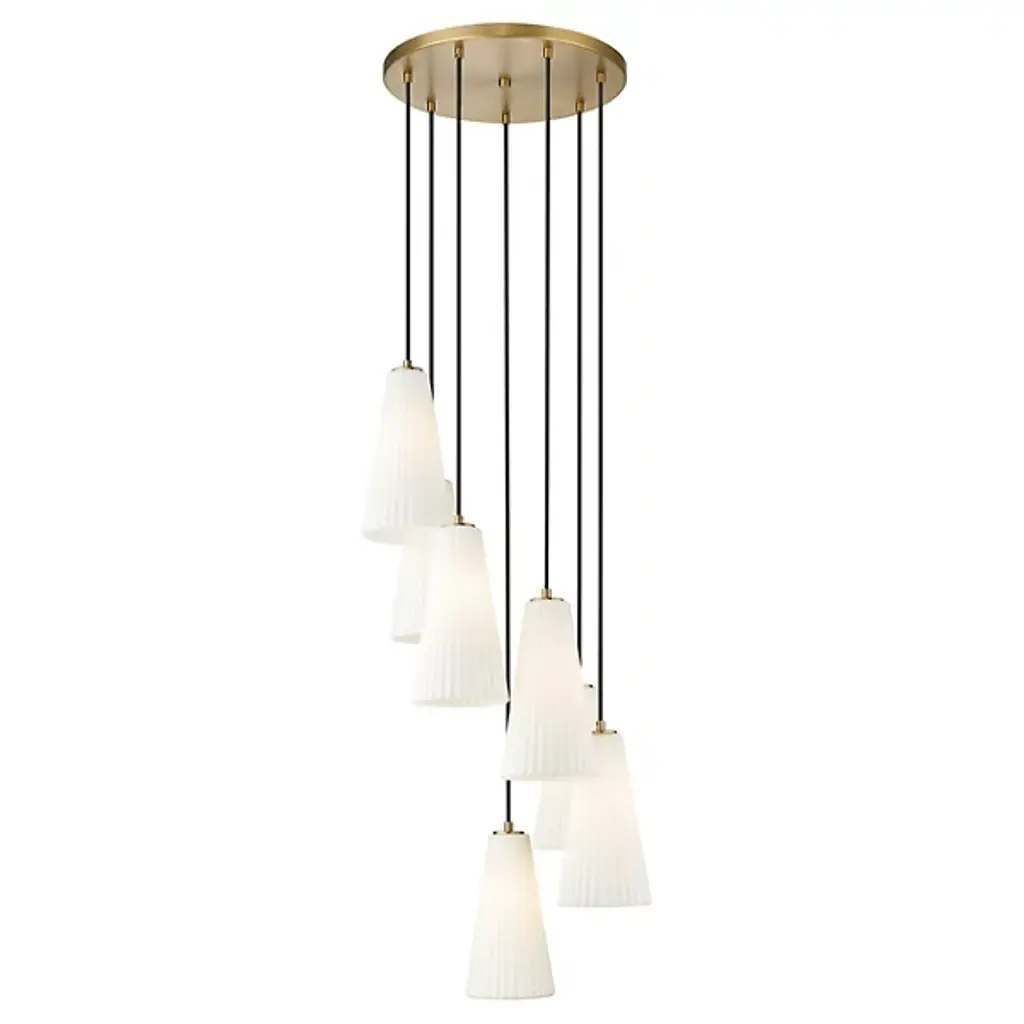 The Hendricks Multi Light Pendant from Alder & Ore is a celestial ballet frozen in time. It appears to be a spiral galaxy, its arms composed of elongated starbursts, each captured in fluted glass. This cosmic dance descends from your ceiling in a gorgeous spiral, each light suspended at a different height as if caught in mid-twirl. Perfect for grand foyers or sweeping staircases, this chandelier turns every entrance into a grand debut on the stage of your home.