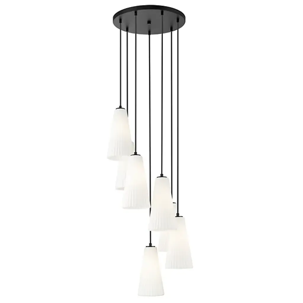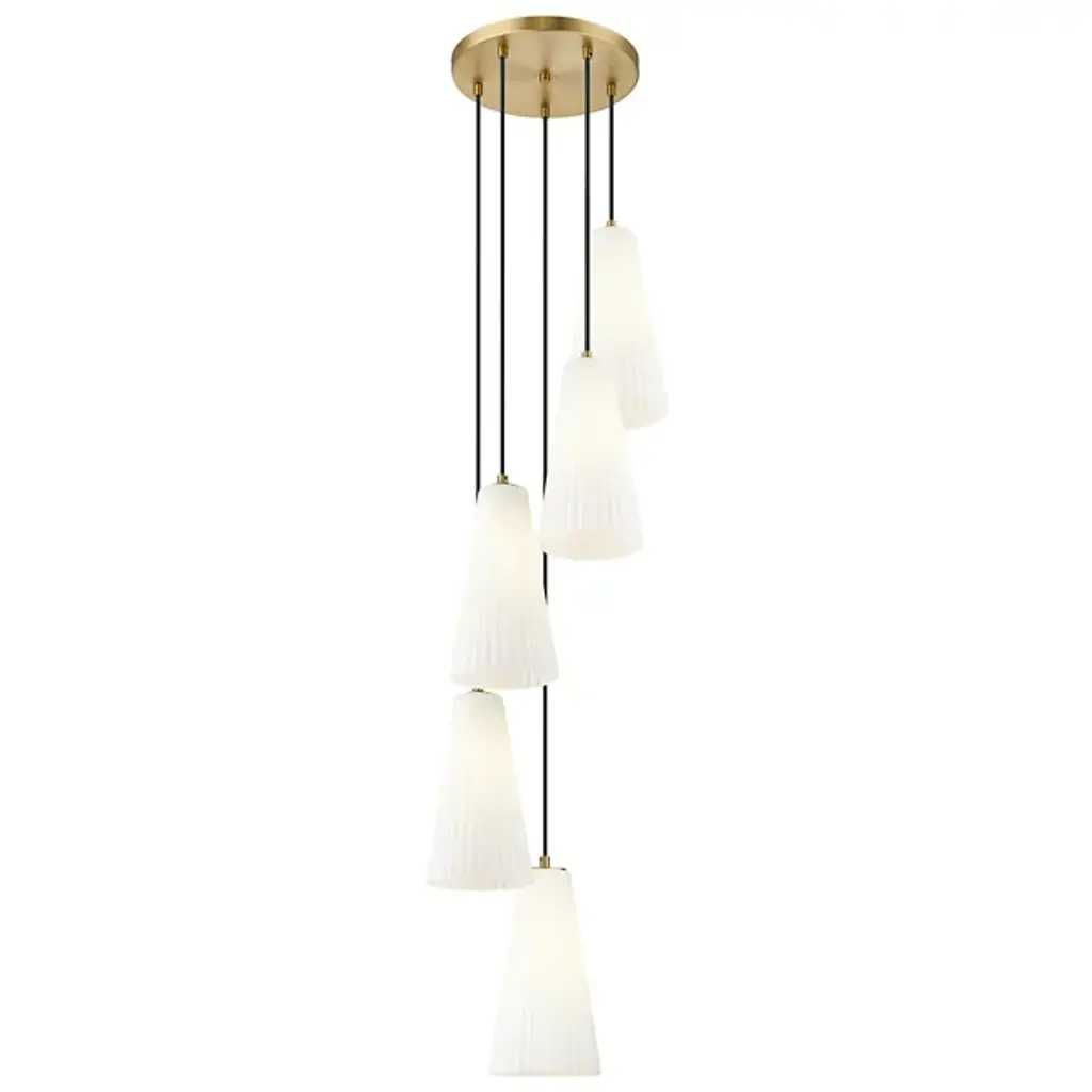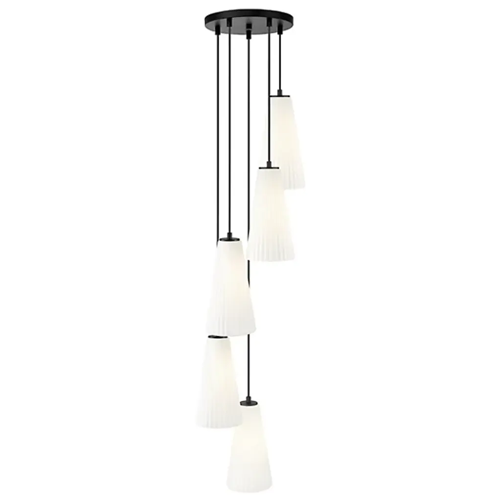The Hendricks Multi Light Pendant from Alder & Ore is a celestial ballet frozen in time. It appears to be a spiral galaxy, its arms composed of elongated starbursts, each captured in fluted glass. This cosmic dance descends from your ceiling in a gorgeous spiral, each light suspended at a different height as if caught in mid-twirl. Perfect for grand foyers or sweeping staircases, this chandelier turns every entrance into a grand debut on the stage of your home.