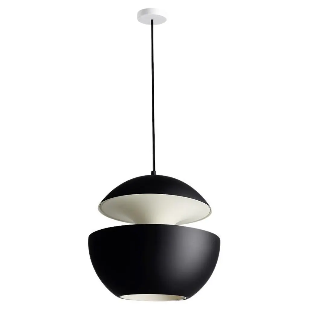 The Here Comes the Sun Pendant (1969) was designed by French architect Bertrand Balas. When turned on, this pendant is transformed into a magical object that looks like the sun or moon rising. Its name is a playful nod to George Harrison's song for the Beatles, for which he wrote the lyrics, “Little darling, it's been a long cold lonely winter. / Little darling, it feels like years since it's been here. / Here comes the sun." This orb-shaped piece casts direct light downward and glare-free diffused light outward in all directions. Can be used individually or grouped in clusters. Bulb for small (not included): LED or halogen; G9 base; 25W max. Bulb for large or extra-large (not included): LED, CFL or incandescent; E26 base; 40W max. UL Listed. Made in China.