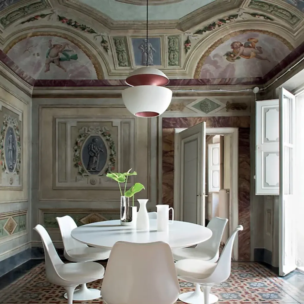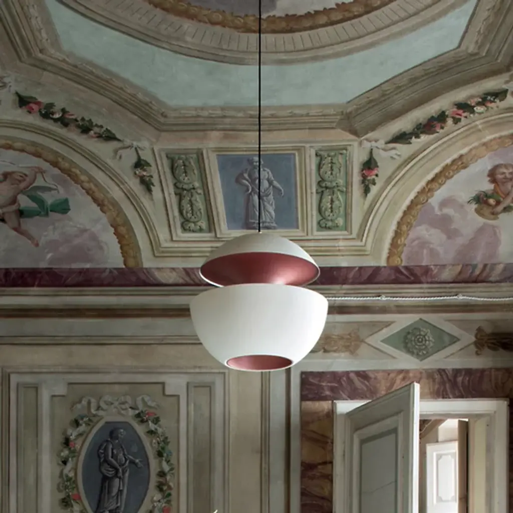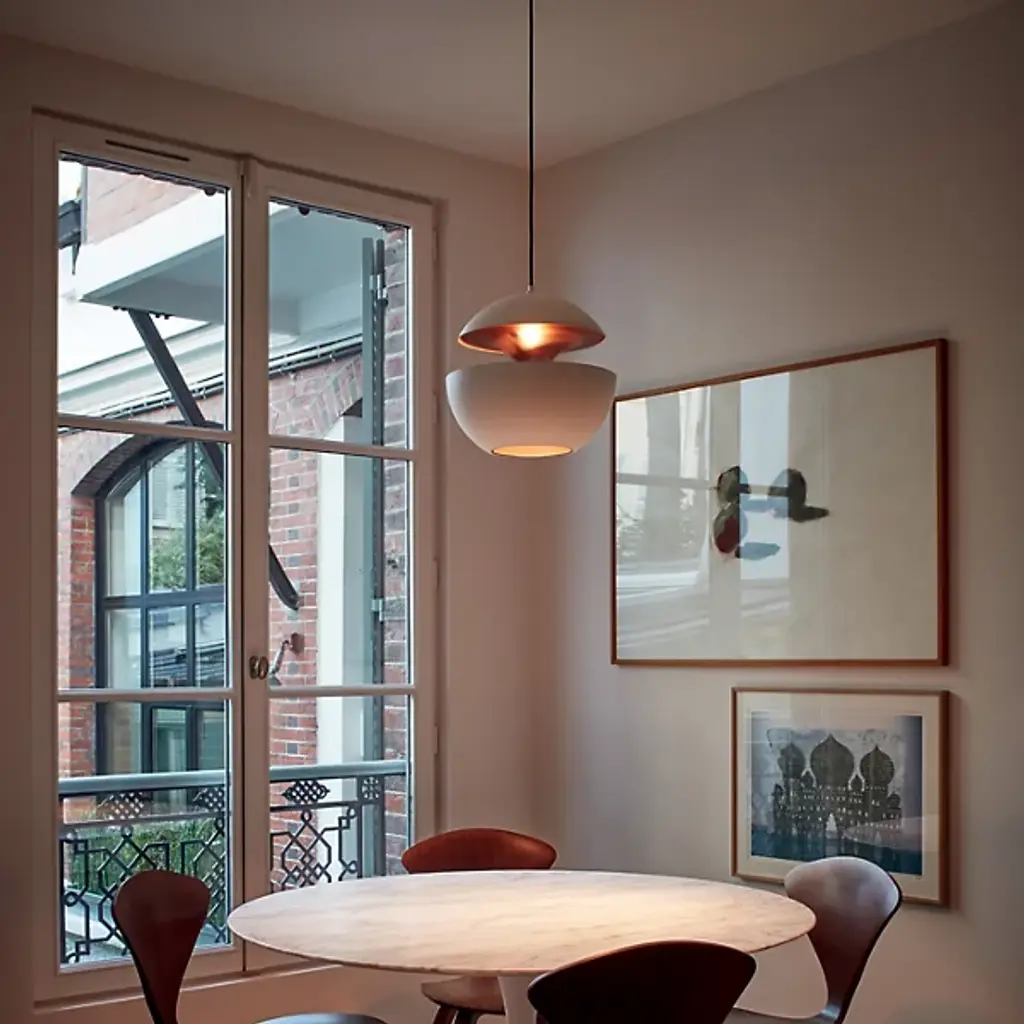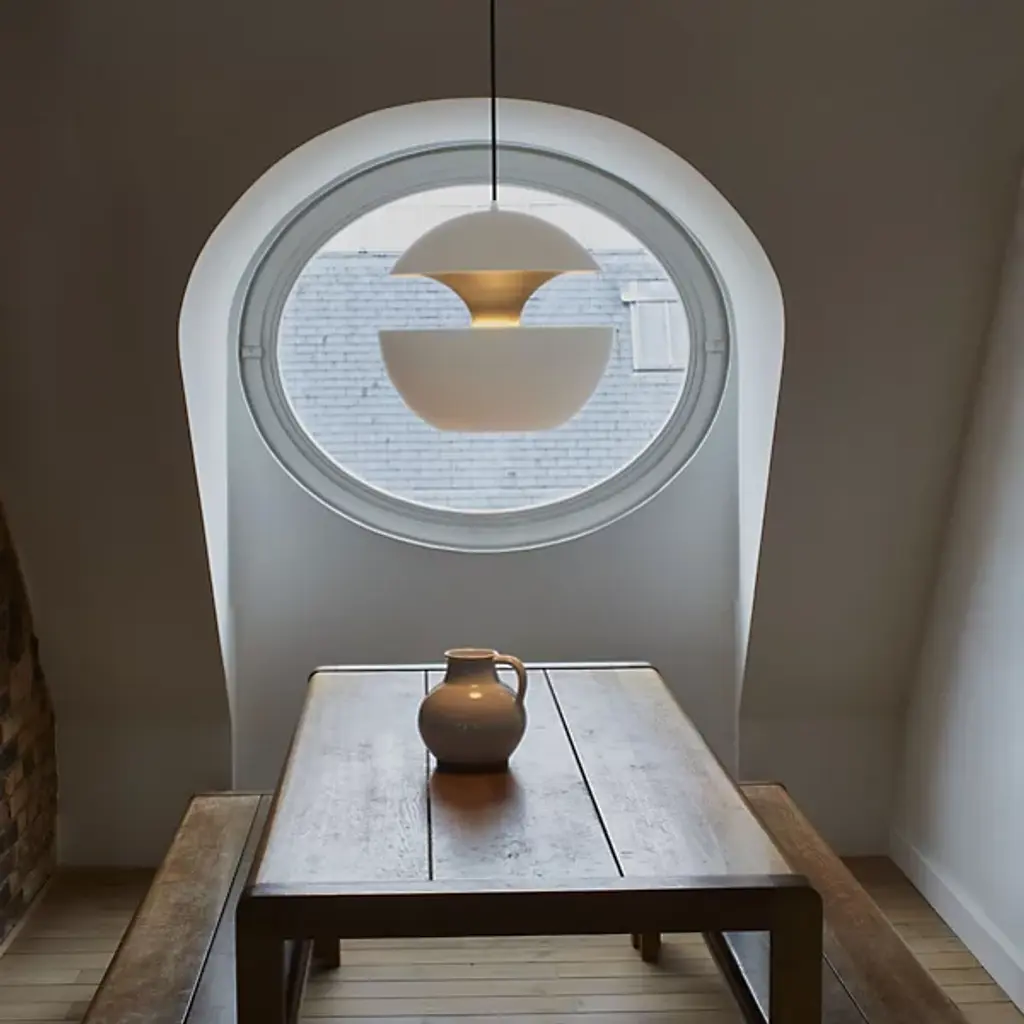 The Here Comes the Sun Pendant by DCW editions is a unique fixture that takes visual inspiration from the setting sun. The Toulouse-born architect Bertrand Balas drew upon his memories of watching the sun set beneath the Garonne River as he crafted a product that takes on an almost magical quality when lit. Its modern and minimal design makes it versatile in placement, though it stands out best when in living rooms or hallways.