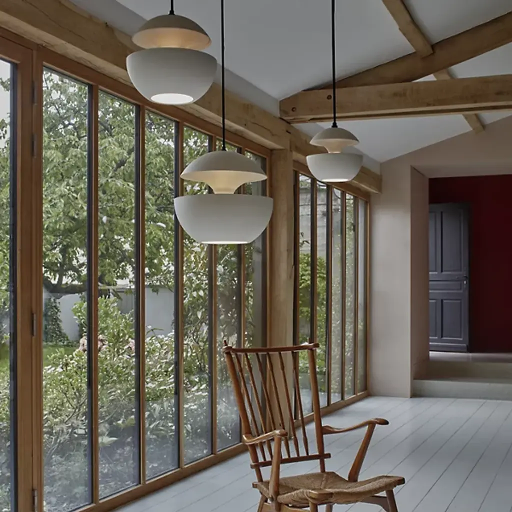 The Here Comes the Sun Pendant by DCW editions is a unique fixture that takes visual inspiration from the setting sun. The Toulouse-born architect Bertrand Balas drew upon his memories of watching the sun set beneath the Garonne River as he crafted a product that takes on an almost magical quality when lit. Its modern and minimal design makes it versatile in placement, though it stands out best when in living rooms or hallways.