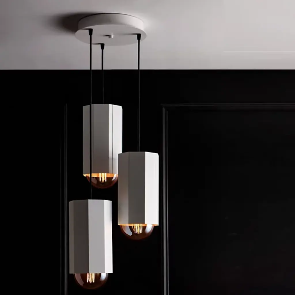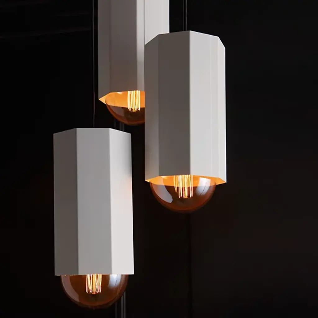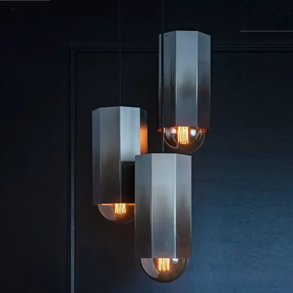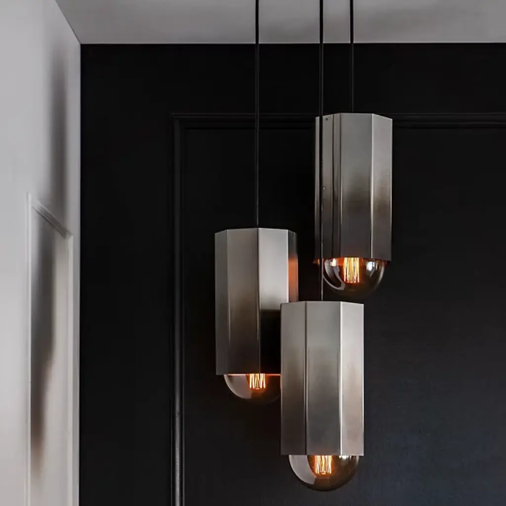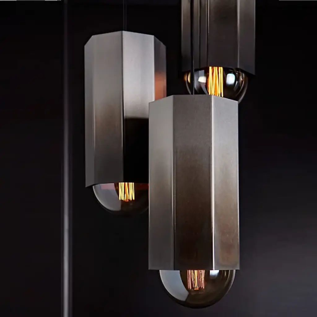 The Hex Round Pendant by John Beck Steel is a bold and beautiful creation designed by John Beck. Cleaned, stained, and buffed by hand, chunky steel sleeves with a structured, cylindrical look each house a bulb that can be hidden within these forms or lowered to peek out for a cool, contemporary composition. Suspended from a round canopy, these pieces are distilled down only to the necessary elements as they lend a warm and welcoming layer of light to their surroundings.