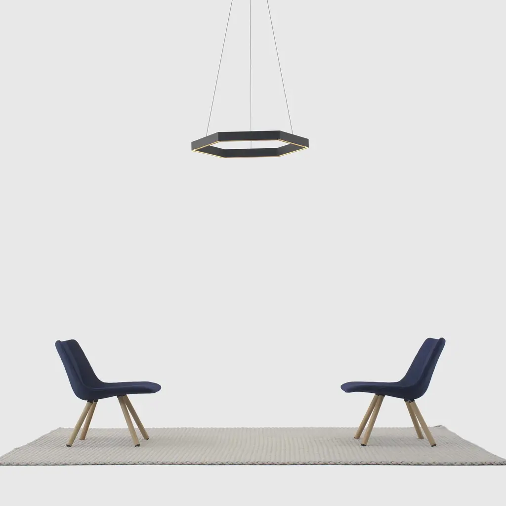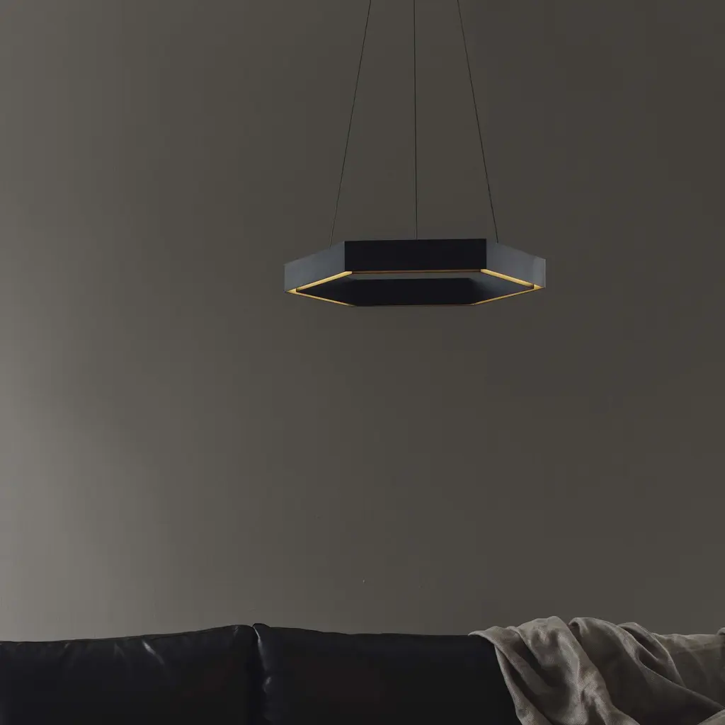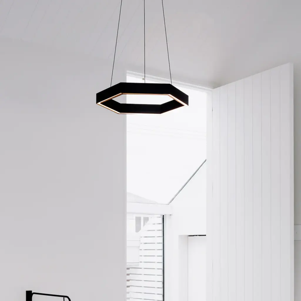 Designed by Resident Studio, Hex is an innovative hexagonal shaped pendant light constructed from aluminum. A modern alternative for home, office or retail spaces, Hex contains a high quality warm LED light source, which is projected through a recessed poly prismatic diffuser. Features
