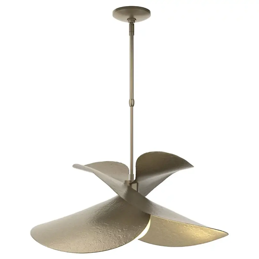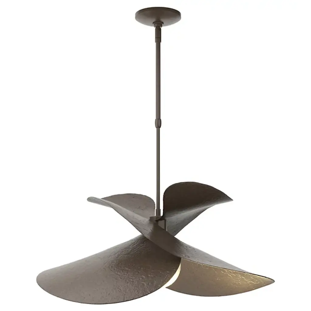 A cool and contemporary twist on a softly shaped design. The Hibiscus Pendant by Hubbardton Forge makes a bold statement with this handcrafted design from Ori Goldberg. The flowing shape of this pendant takes its inspiration from its flowering namesake, each swirled metal petal featuring Hubbardton Forge’s hallmark texturing from a forge fired process. Creating a sense of movement around a single, visible bulb, this piece playfully shapes a lovely layer of light as it adds an artful touch to its environment.