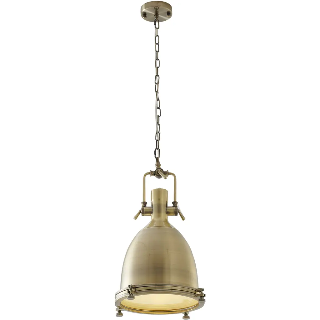 Crafted of hand-rubbed antiqued brass, this pendant adds vintage inspiration to a room without overwhelming it. A great addition to an entryway, dining room, or kitchen, this piece is finished with an acrylic diffuser. Hardwired.