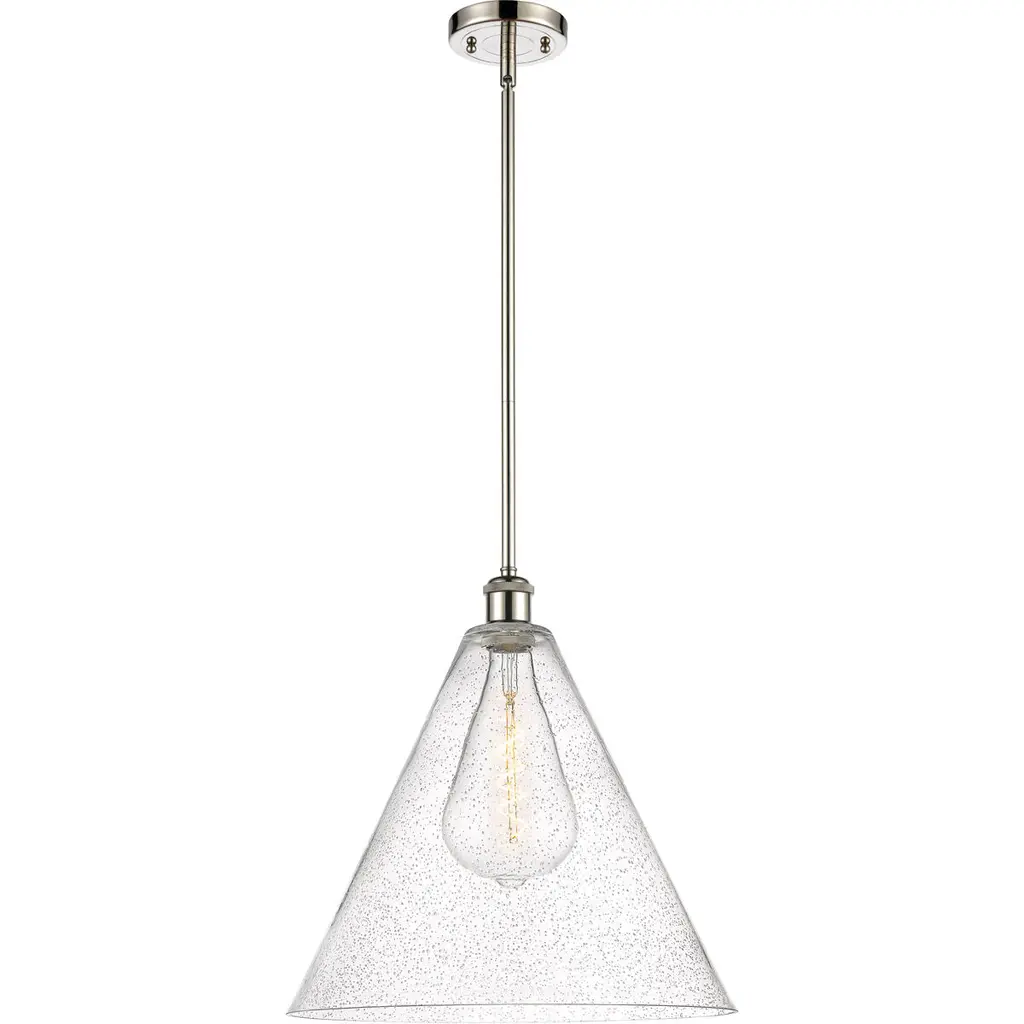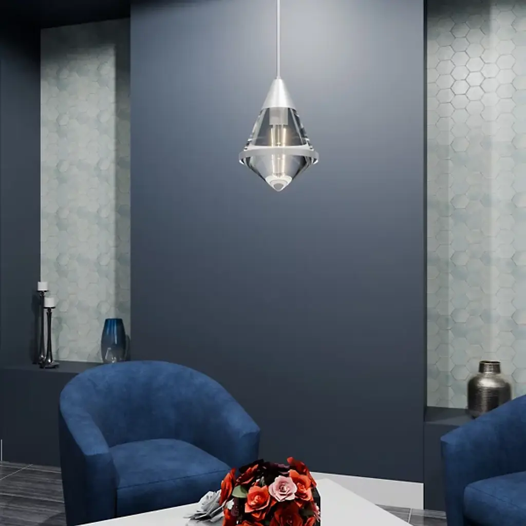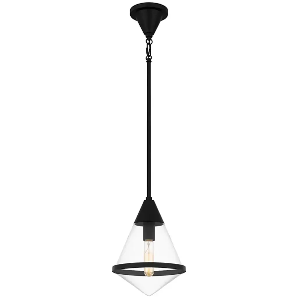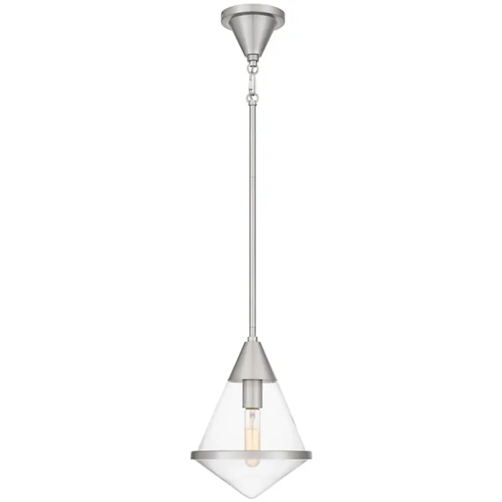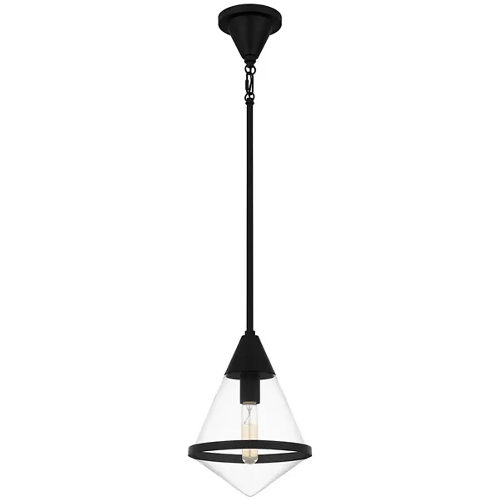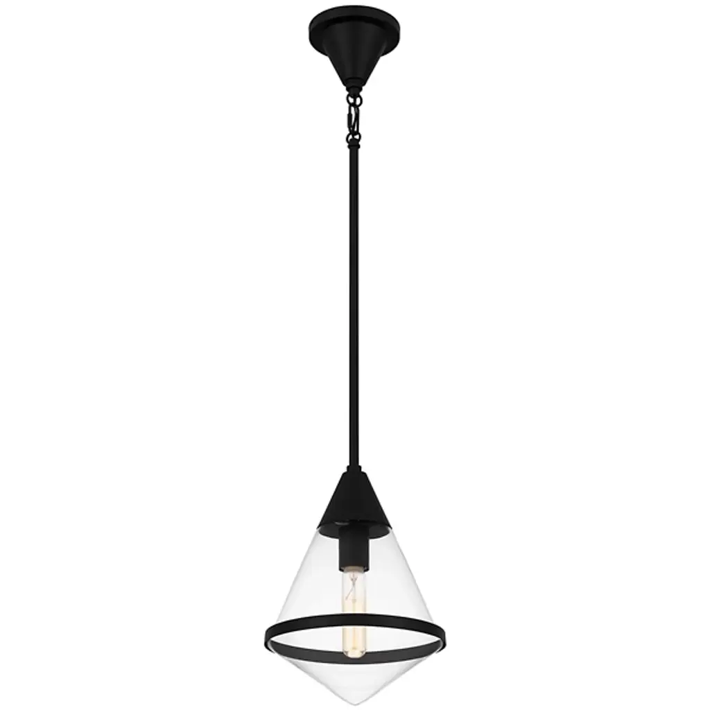 The Hidalgo Mini Pendant from Quoizel stands out with its clean lines and bold geometric shape, making it a focal point in any living space. The clear glass accentuates its unique and transitional silhouette. Whether hung alone or grouped over a kitchen island, bar area, or table, Hidalgo mini pendants add a touch of modern elegance and illuminate the area with style. Enhance your home decor with this striking piece that combines form and function effortlessly.