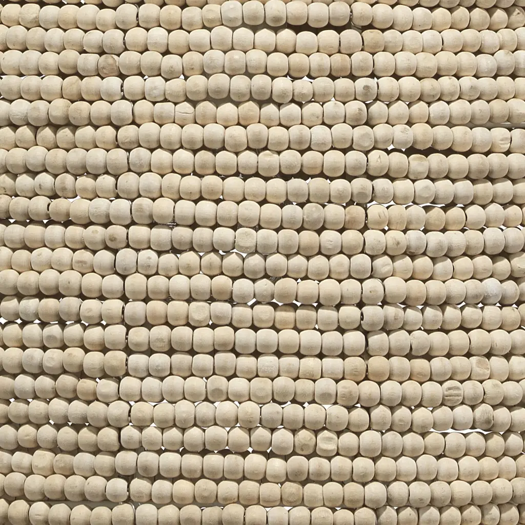 Strings of beads made with mango wood line the body of the oversized High Tide Pendant. A white iron chain compliments the natural tone and texture of this piece. A statement piece with repeating patterns and textures like this can help add interest to any coastal palette.