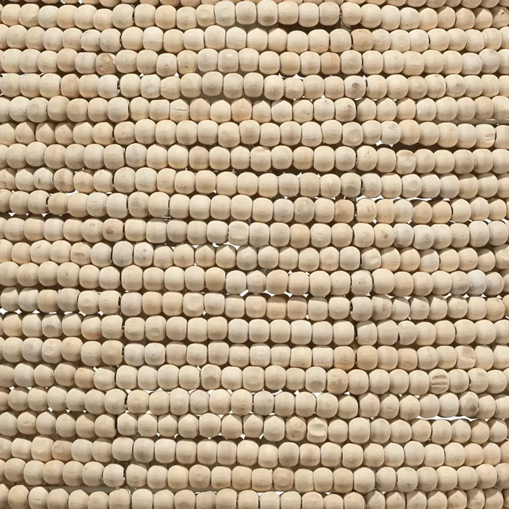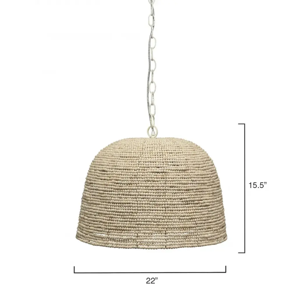 Adorned with hundreds of hand-carved mango wood beads, each with its own character, this oversized pendant will embellish any room with eye-catching texture. Whether it recalls summer at the seaside or bohemian chich, the substantial scale makes it an ornamet for any room.