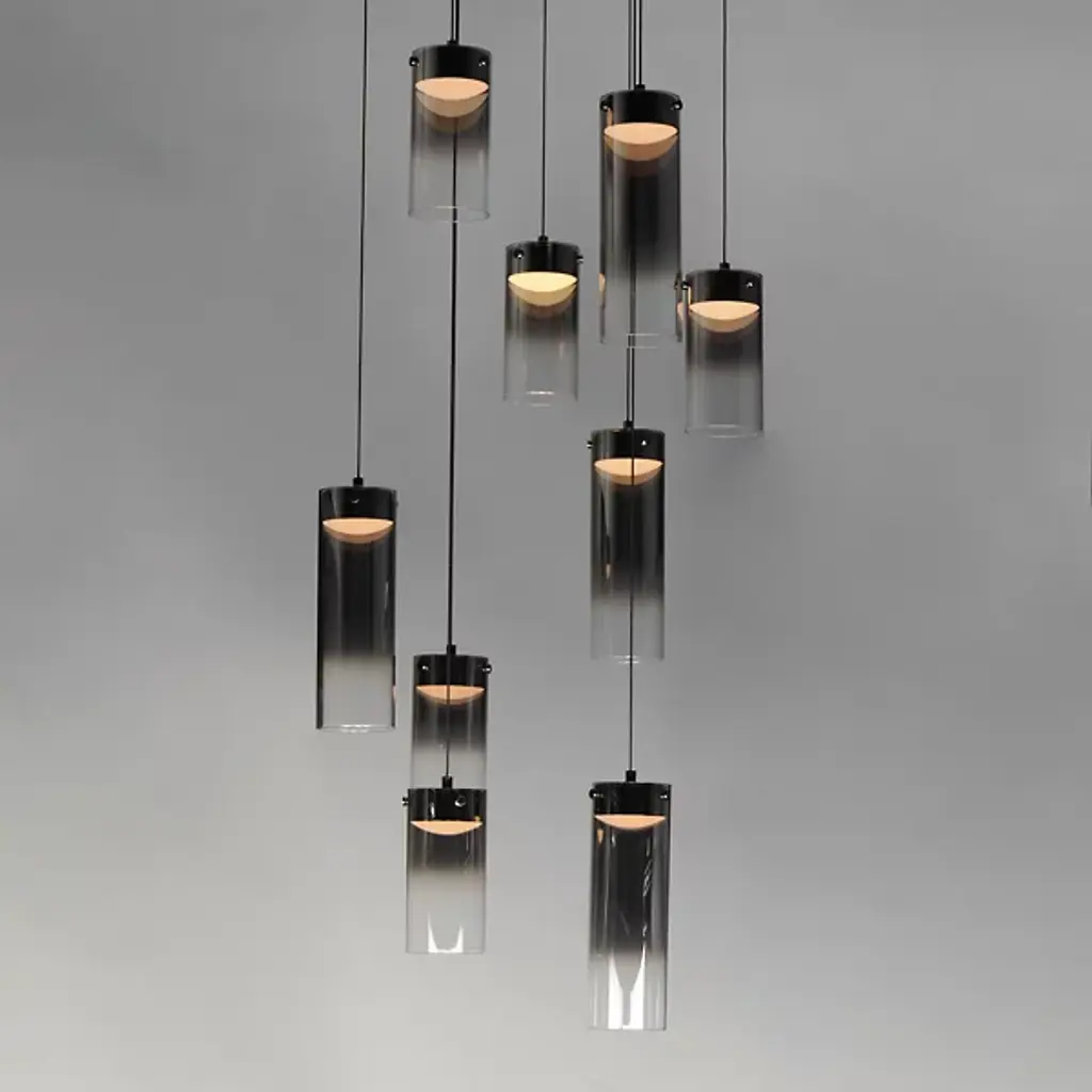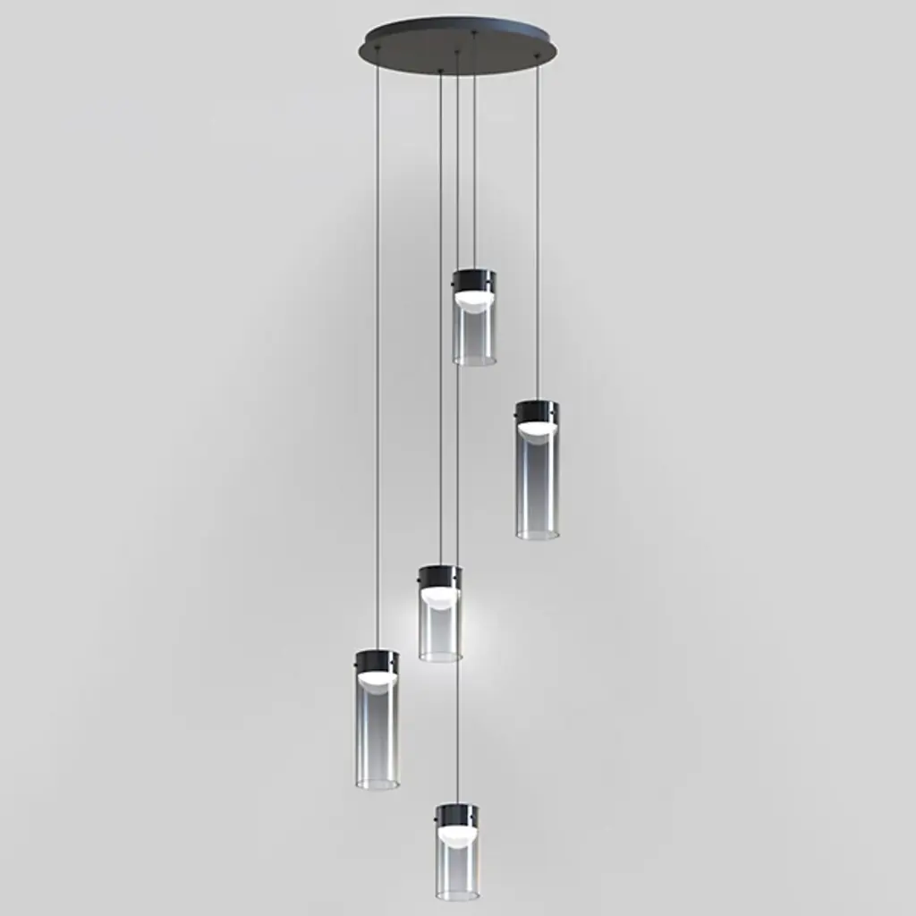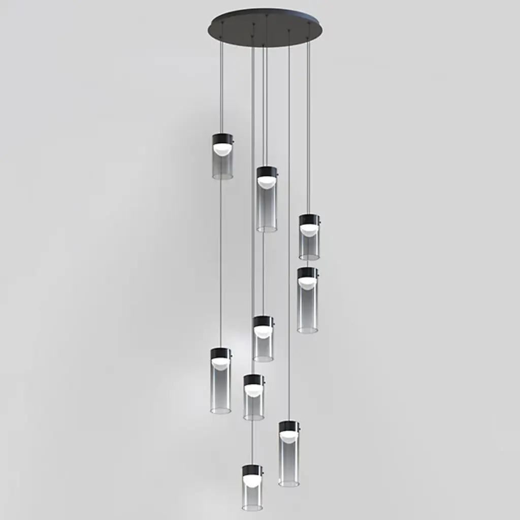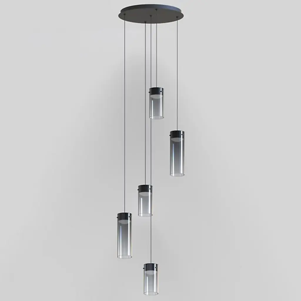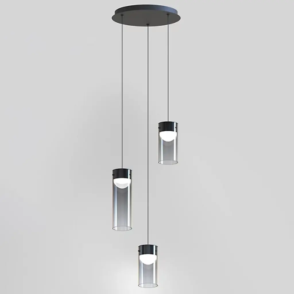 Futuristic in style and minimalist in form, the Highball LED Multi Light Pendant from ET2 Lighting features cylindrical glass shades with a gradient color effect, creating a dynamic lighting ambiance. Supported by a Polished Gunmetal LED housing, the glass offers a mirror-like effect, enhancing its reflective properties. As light reflects along the length of the glass, it creates a captivating and futuristic lighting display, adding a touch of modern sophistication to any space.