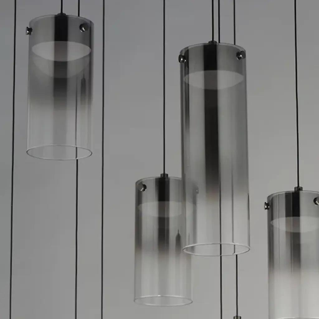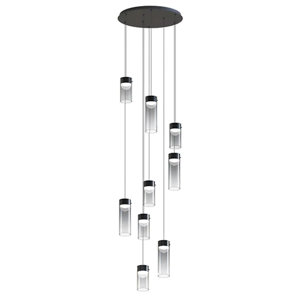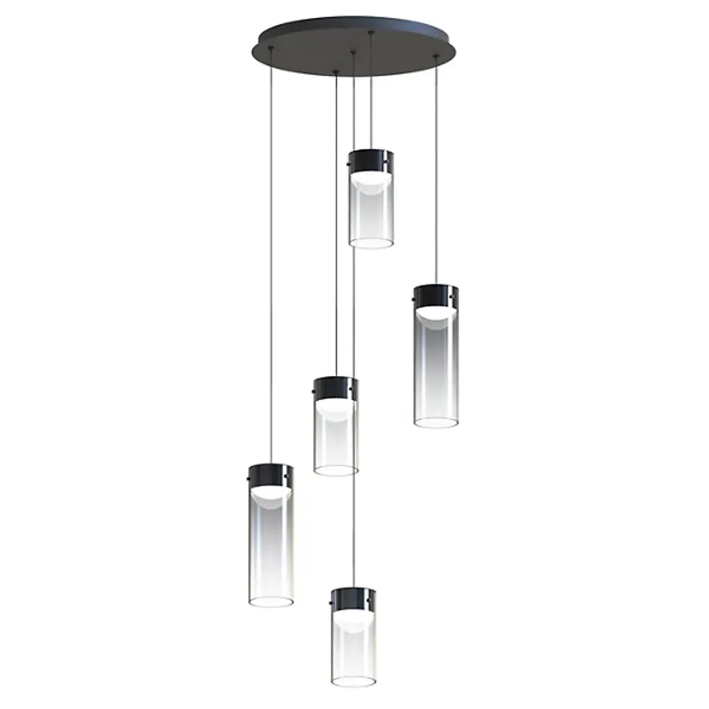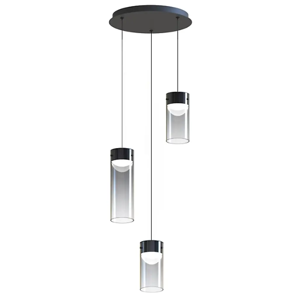 Futuristic in style and minimalist in form, the Highball LED Multi Light Pendant from ET2 Lighting features cylindrical glass shades with a gradient color effect, creating a dynamic lighting ambiance. Supported by a Polished Gunmetal LED housing, the glass offers a mirror-like effect, enhancing its reflective properties. As light reflects along the length of the glass, it creates a captivating and futuristic lighting display, adding a touch of modern sophistication to any space.