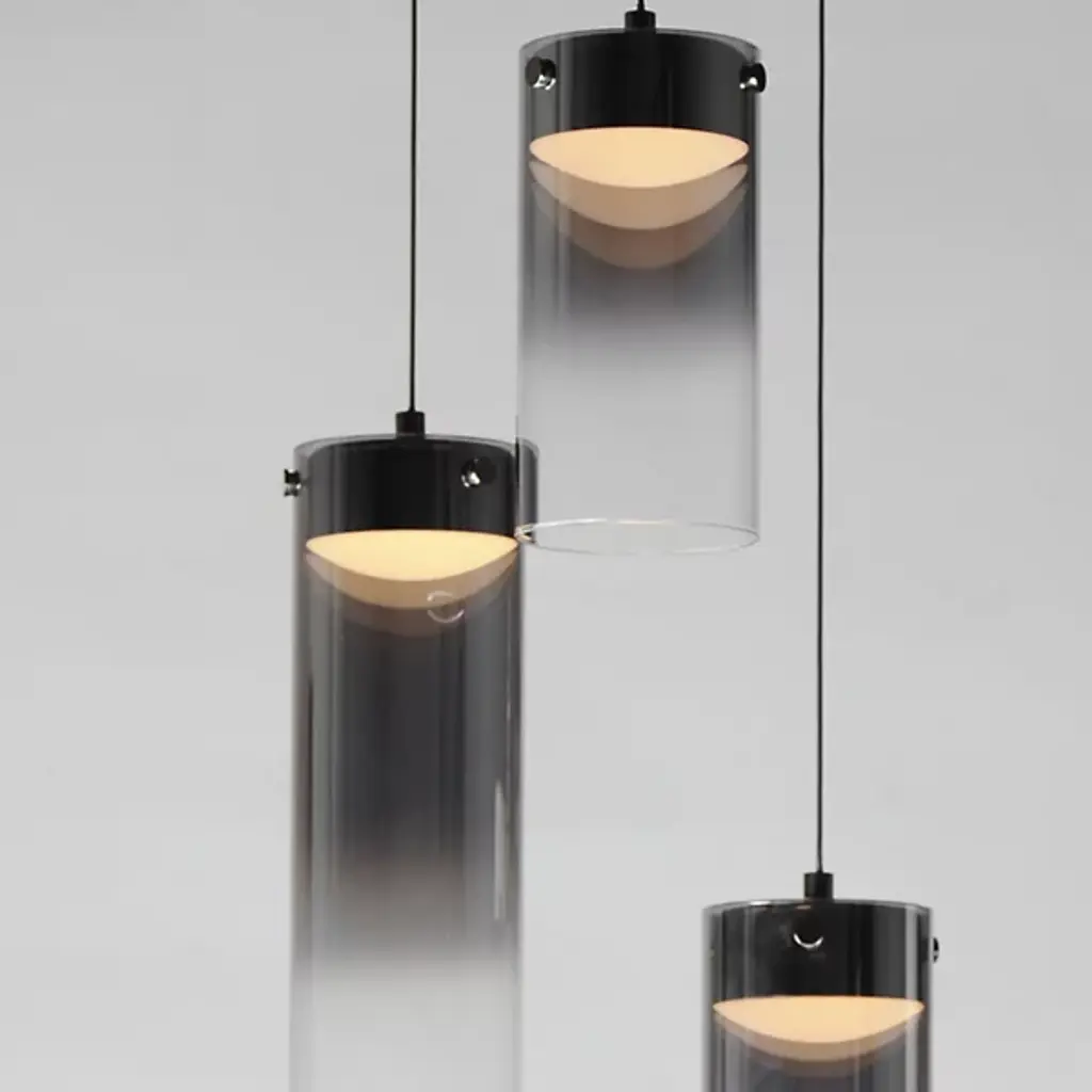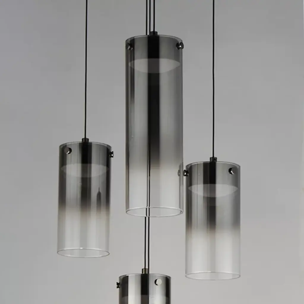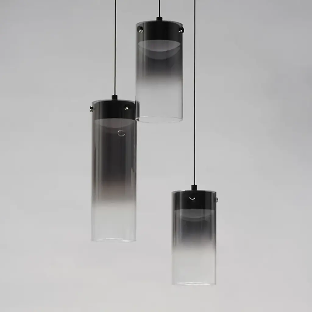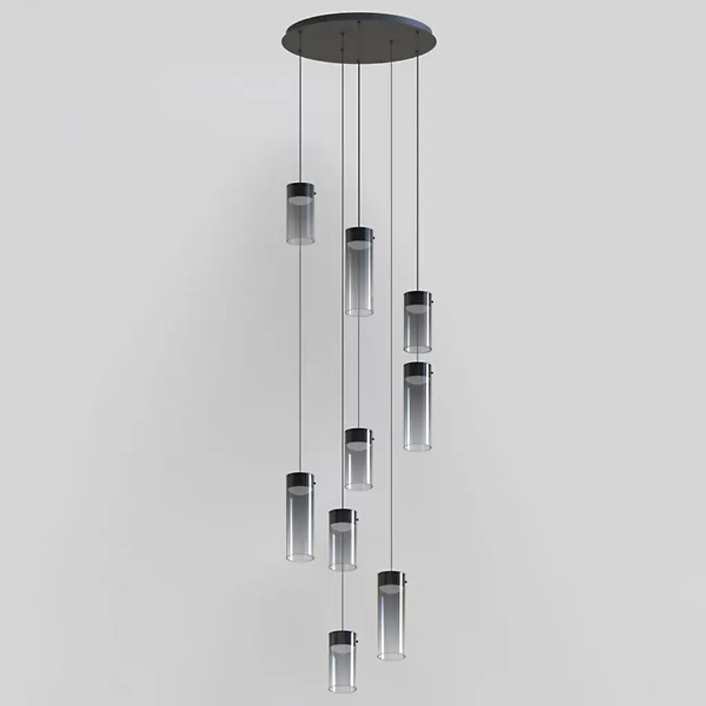 Futuristic in style and minimalist in form, the Highball LED Multi Light Pendant from ET2 Lighting features cylindrical glass shades with a gradient color effect, creating a dynamic lighting ambiance. Supported by a Polished Gunmetal LED housing, the glass offers a mirror-like effect, enhancing its reflective properties. As light reflects along the length of the glass, it creates a captivating and futuristic lighting display, adding a touch of modern sophistication to any space.