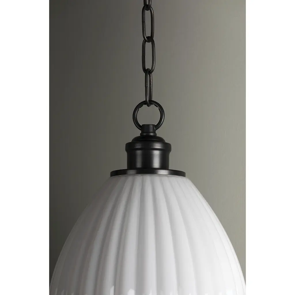 Hillary captures the cottage charm captivating the design world. The single light pendant, available in aged brass and old bronze features a fluted glass shade dangling elegantly from the chain. Stunning on its own, this antique darling proves better in pairs, layered in multiples over a kitchen island or dining scene. Also available in a smaller size.