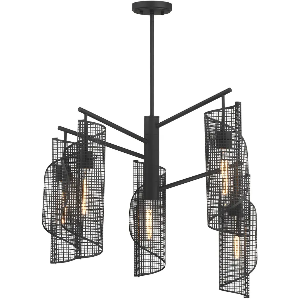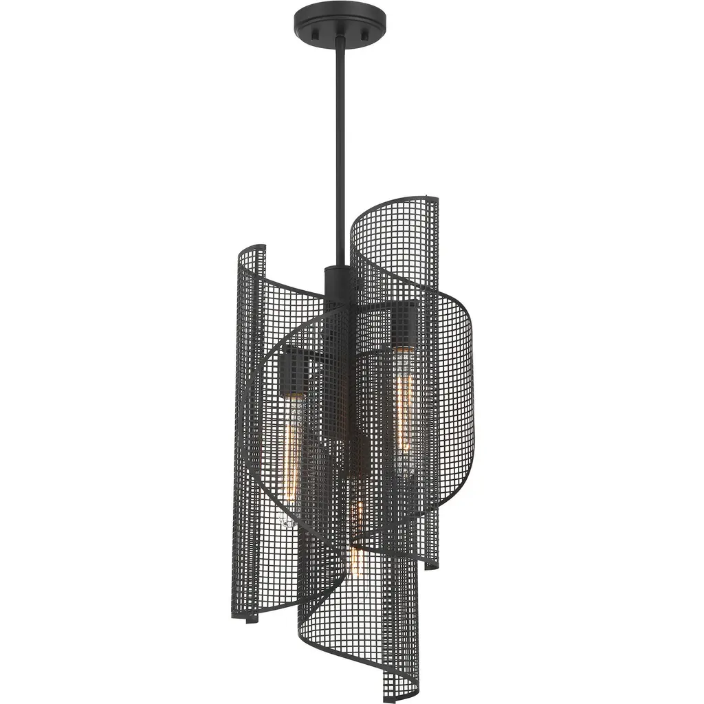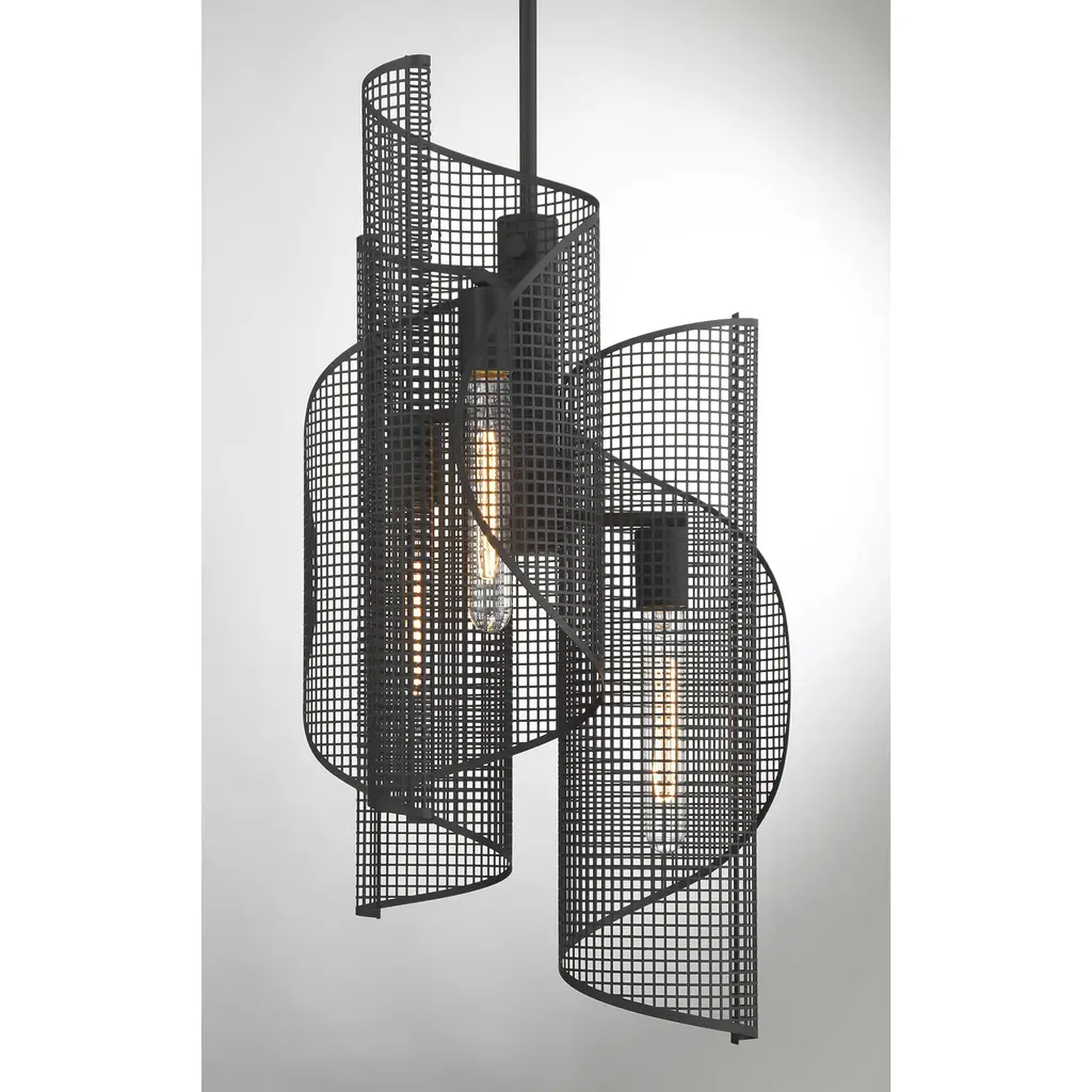 The Savoy House Hillbourne 3-light pendant showcases ribbons of intriguing urban loft style. Its perforated metal shades, finished in Matte Black, appear to swirl and twirl beautifully. Hillbourne is 14 in width and has an adjustable height ranging from 26 to 80. Uses three standard size bulbs of up to 60 watts per bulb. Bulbs not included. Comes with four 12 downrods and one 6 downrod.