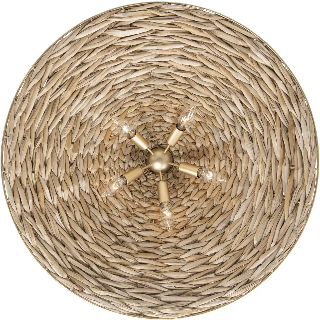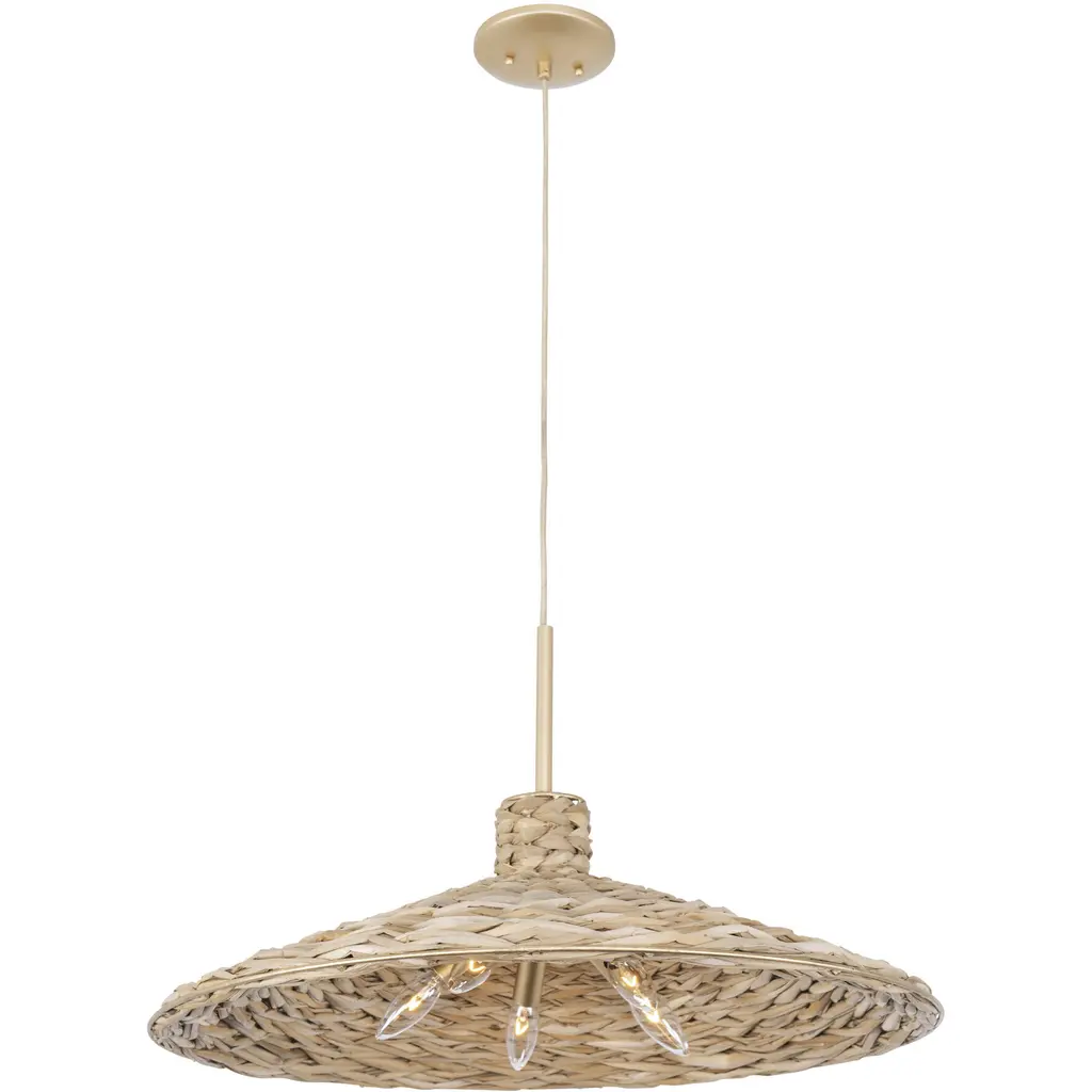 Hilton Head 5 Light 26.25 Inch French Gold With Natural Seagrass Pendant Ceiling Light