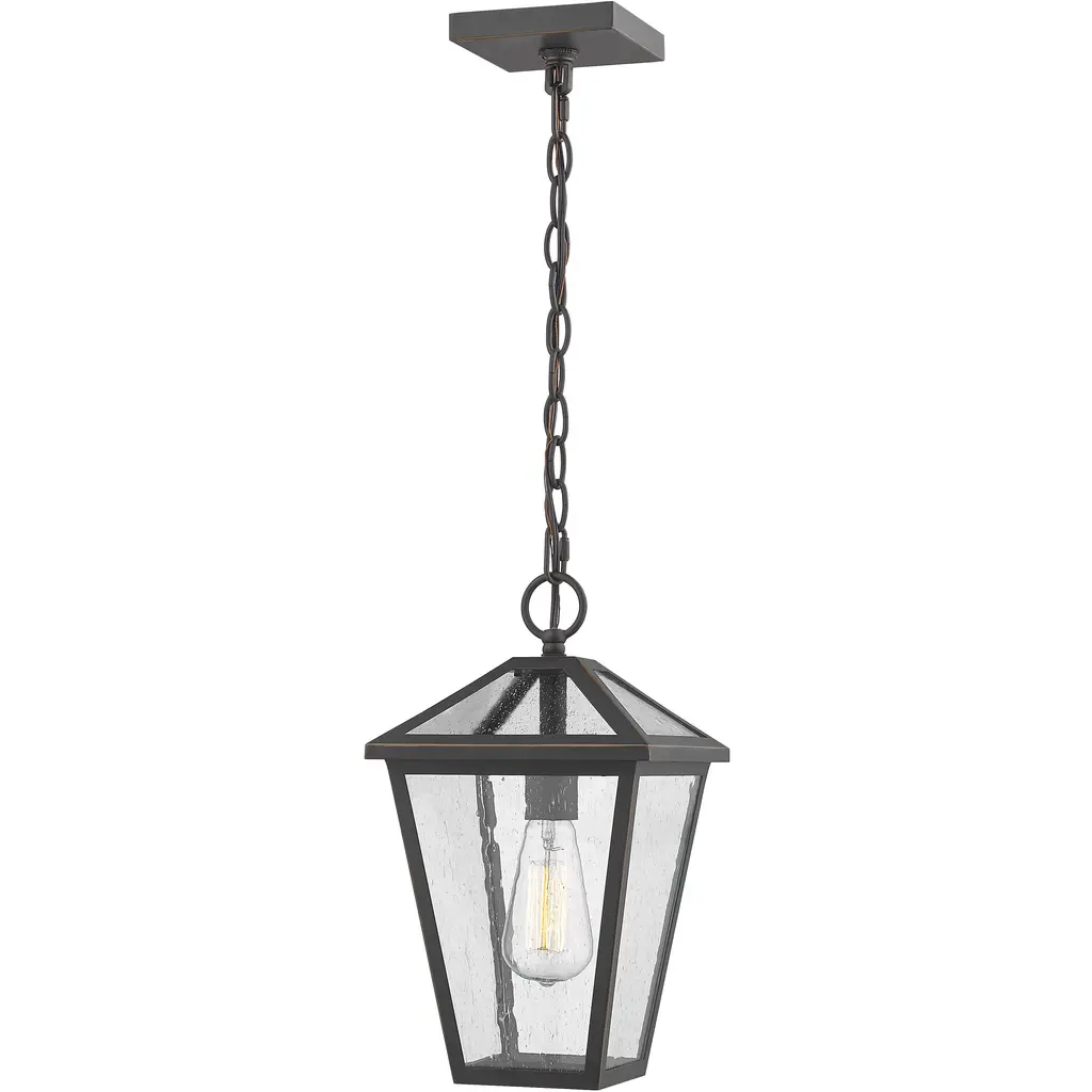 Classically crafted with a traditional silhouette, this three-light outdoor metal hanging light is perfect for simple illumination. Placed on a covered porch or balcony, it casts a soft glow through clear seedy glass shades to light up the night in a no-nonsense style. This tasteful fixture from Hinkley Outdoor Lights is rounded out with a rich black finish for a truly timeless appeal.