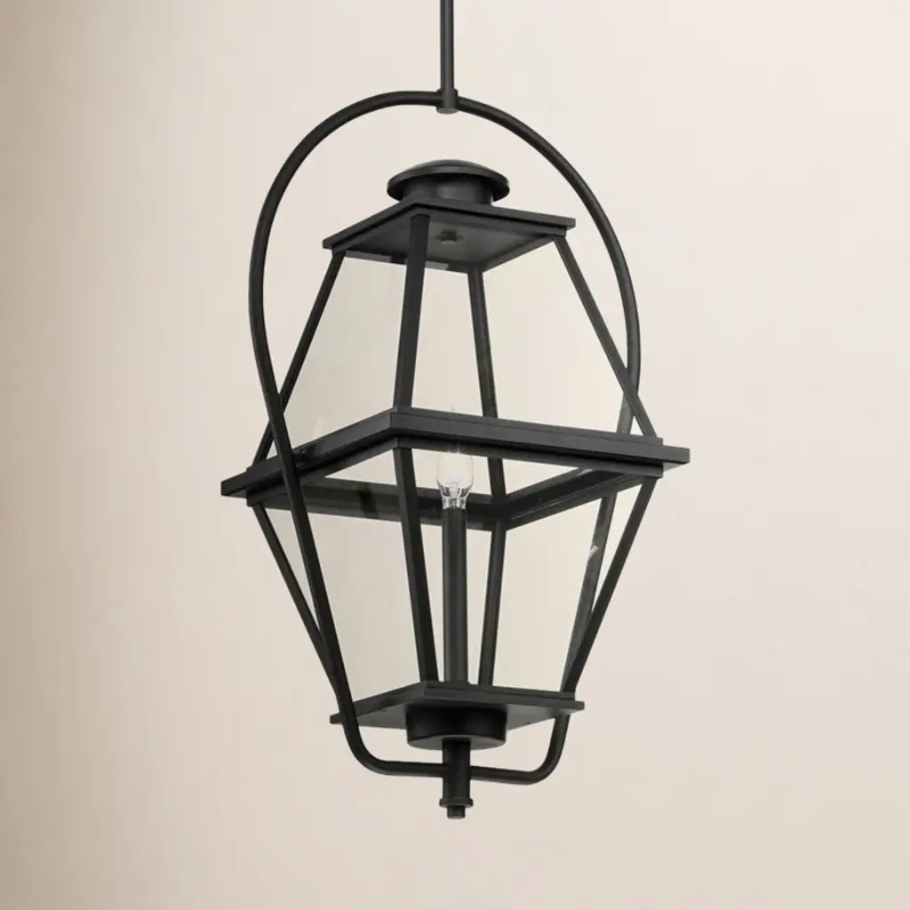 This transitional outdoor lantern hanging light from the Sullivan collection helps your home's exterior space make its best impression. The light features a minimalist cast aluminum body that frames the contemporary, candle-like etched opal glass. A large cast ring finial is mounted on top for a traditional finishing touch to this sleek lantern design.