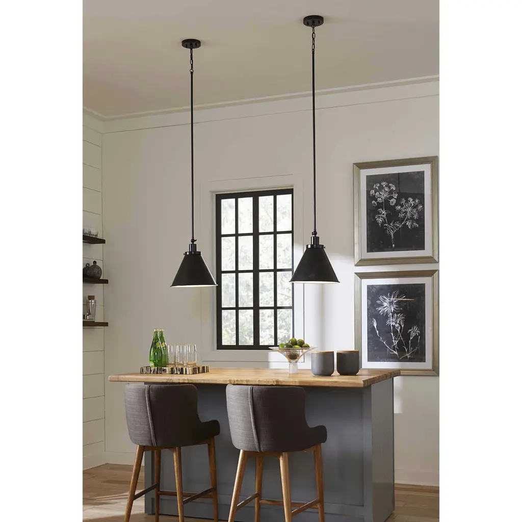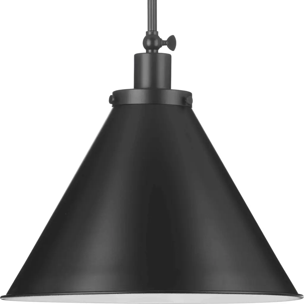 Enjoy focused task lighting with the Hinton Collection 1-Light Matte Black Industrial Pendant Light. A light source glows from within the hanging light's signature metal shade that fosters the design's industrial aesthetic. The vintage metal shade is coated in a sleek matte black finish for modern industrial character.