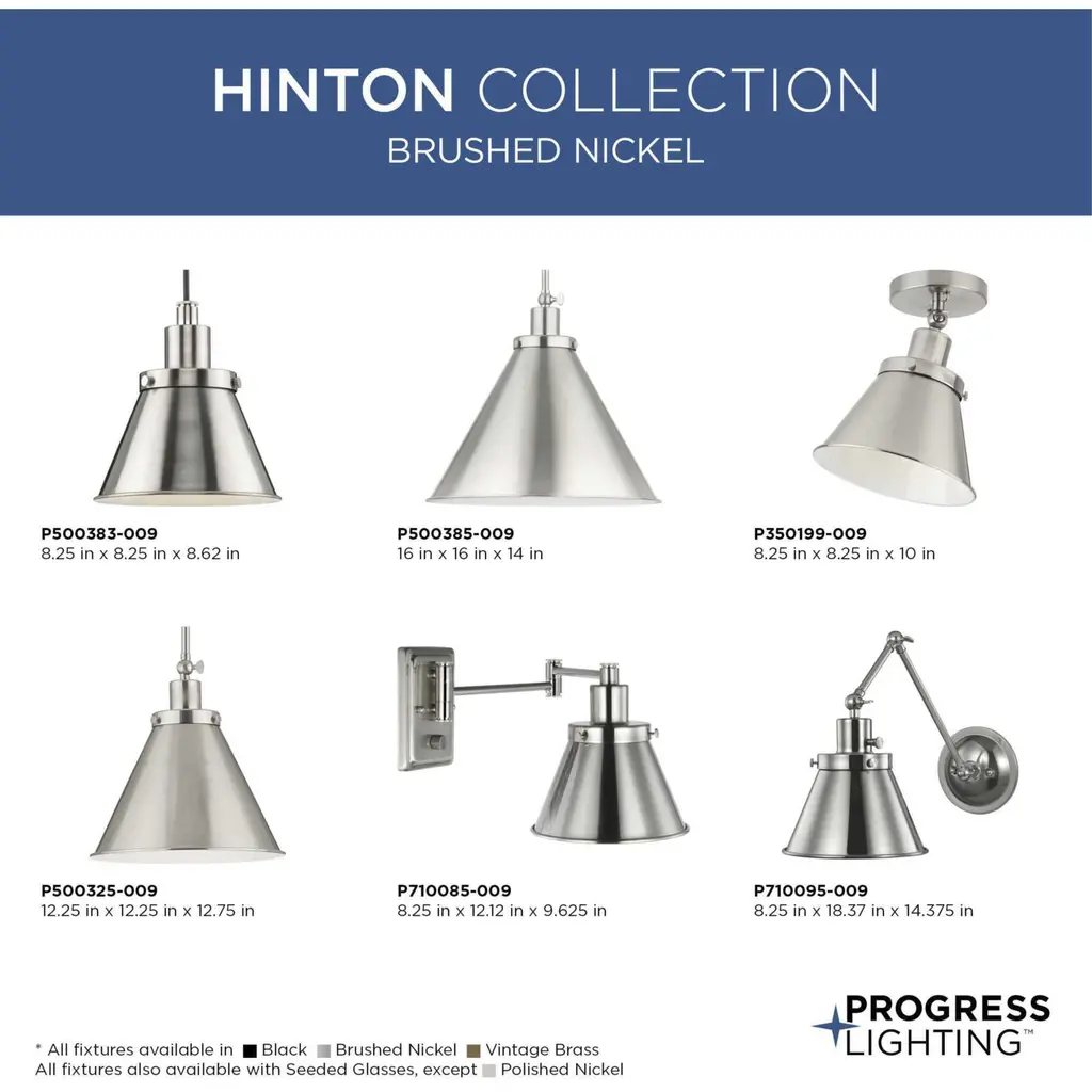 Simplicity defined is the hallmark of the Hinton Collection. Hintons metal fittings offer an industrial demeanor, complemented by an opaque metal shade that provides effective task lighting kitchens and breakfast nooks in coastal, transitional and modern farmhouse settings.