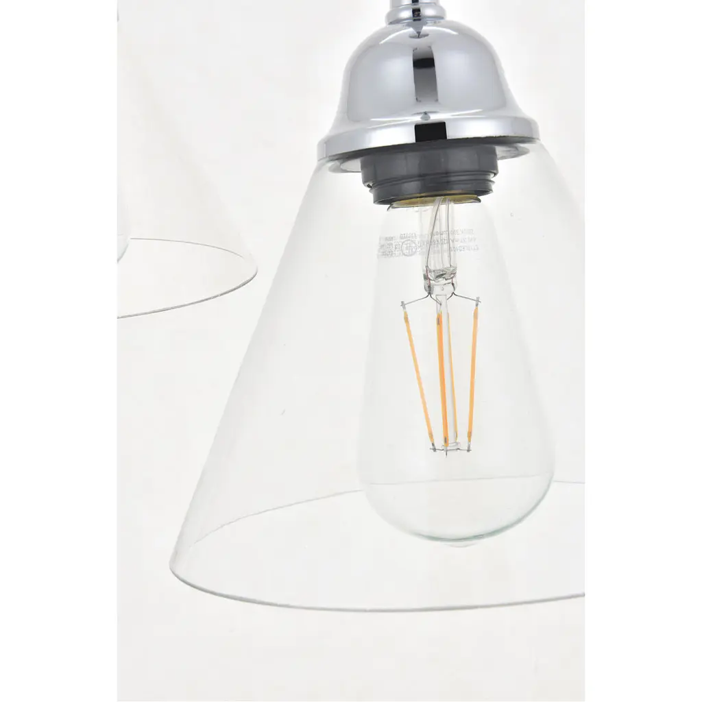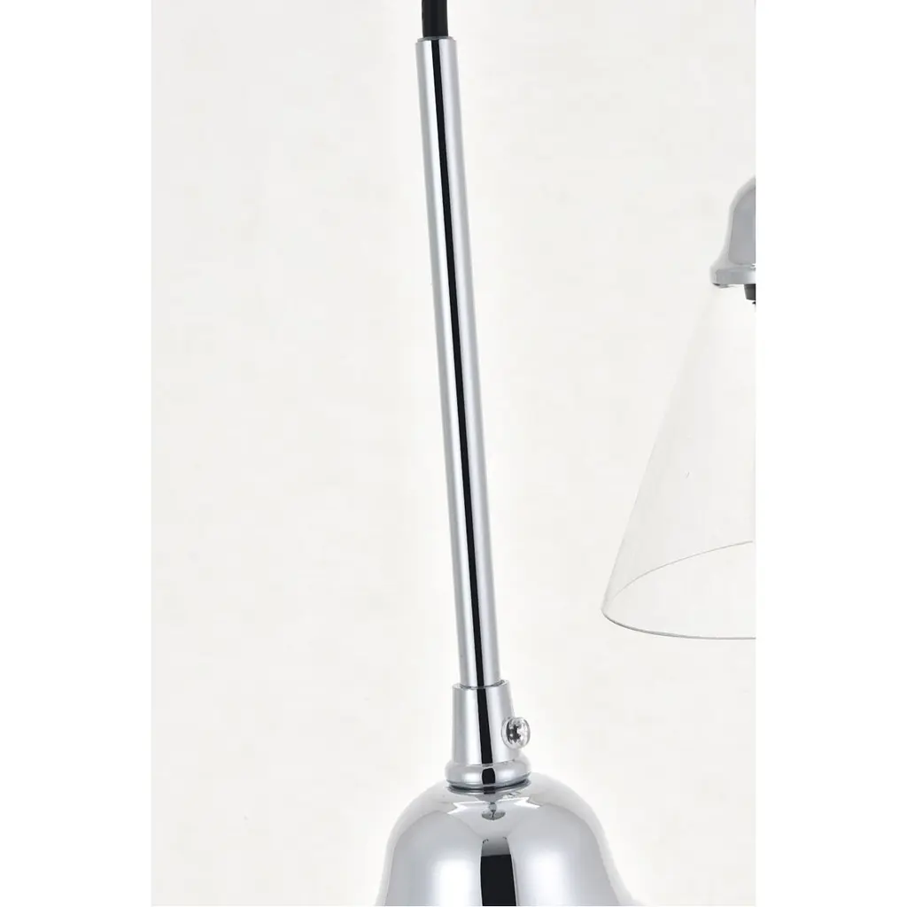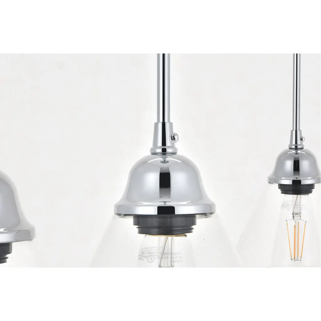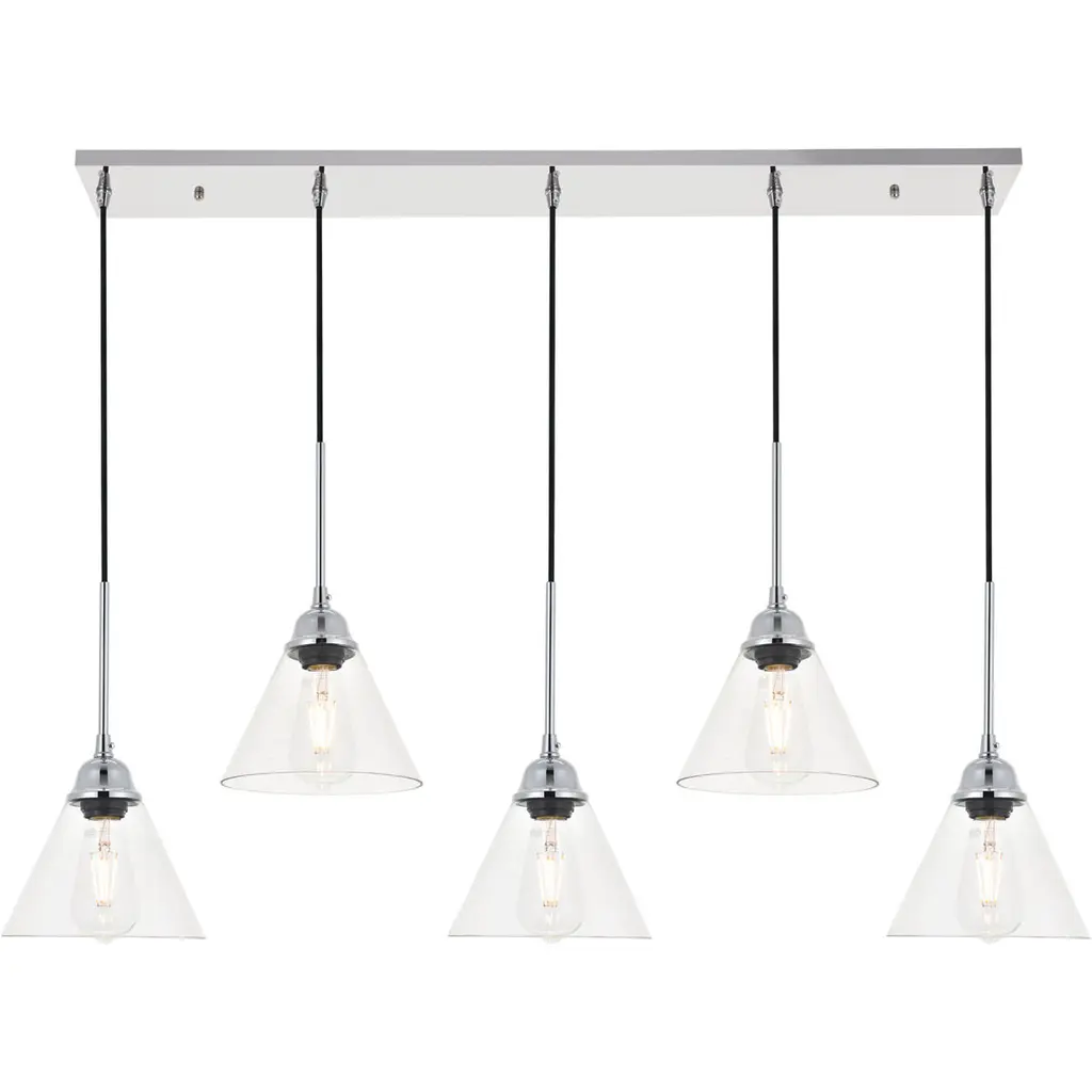 Take a step back through time with the Histoire 5-light pendant lamp in a chrome finish. The ever delightful adjustable cords support the clear glass cone shades while lights illuminate the surrounding area, creating a beautiful display of charm. Hanging 5 in a row, this is the perfect pendant lamp to act as your guide in your foyer or living room, or even to light up your bathroom walls, you will always enjoy its captivating light.