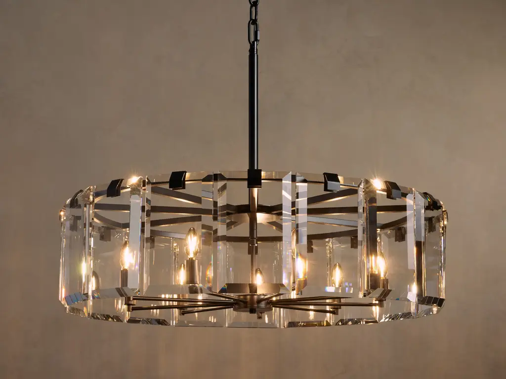 Hoffmann V is a brass chandelier available in different finishes.Finishes: Antique, Shiny brass, Matt brass, Shiny nickel, Matt nickelCapacity : 8x75 W E27This collection drew inspiration from the acclaimed Austrian architect and designer Joseph Hoffmann. The designer of Kubus and Sitzmachine armchairs strived for simplicity in design all his life, thus loving straight lines and cubic shapes, which can be seen in any of his designs. The trademarks of our Hoffmann collection are cubic elements and straight lines. Our pendant light boast streamlined forms and countless glass tubes.Additionally, they are accompanied with matching wall lights, table lamps and floor lamps, thus multiplying the marvellous light reflections of the chandeliers. This luxurious and lavish lighting deserves equally stylish and lavish interior, be it a fine dining place or a boutique hotel.