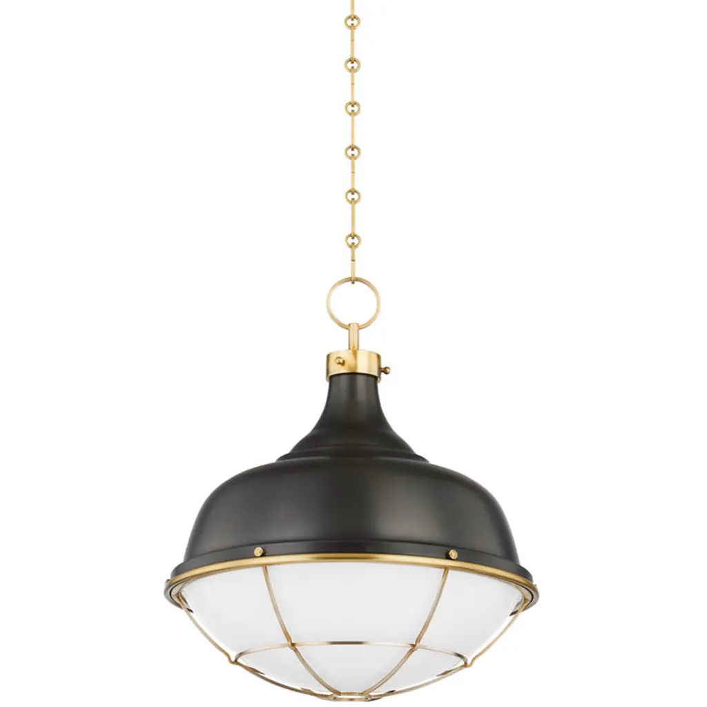 The Holkham Pendant is presented by Hudson Valley Lighting. Gorgeous metallic cage work and glossy opal glass give this recognizable silhouette an instant upgrade. The refined hardware and vintage-inspired finish add to Holkham’s elevated nautical aesthetic. Display Holkham as a solo piece or in multiples to animate your space with light and style.