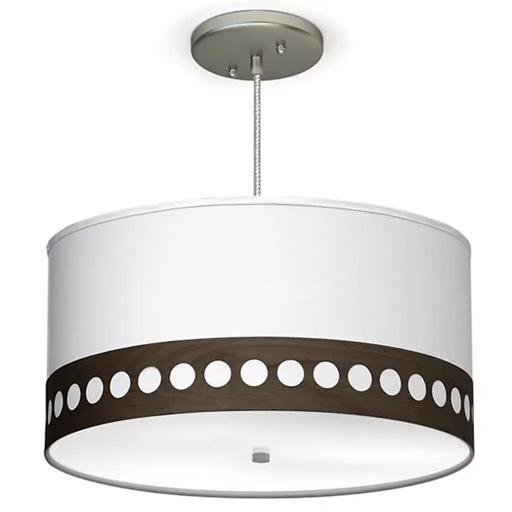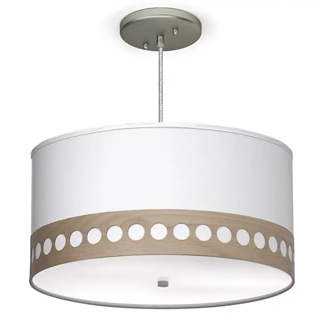 The Holly Drum Pendant from Seascape Lamps pairs fabric and wood in a fresh take on ceiling lighting. A linen shade forms the main body, while a wood veneer trim runs along the bottom edge, adding a band of natural material and pattern. The fixture’s bottom diffuser prevents glare and creates an even wash of light that's ideal for dining areas and living spaces. This mid-century inspired pendant bridges the gap between purely functional lighting and decorative accents, working best in spaces where its details can be noticed and valued.