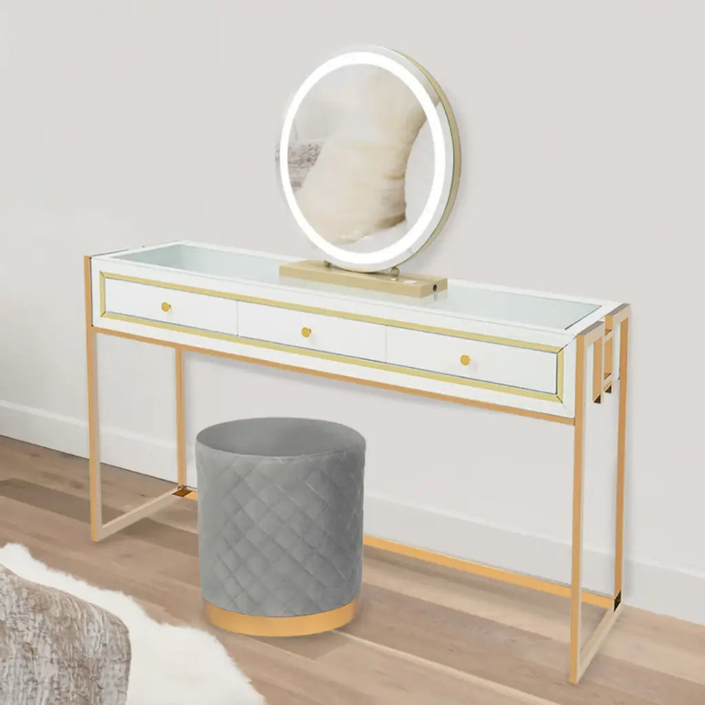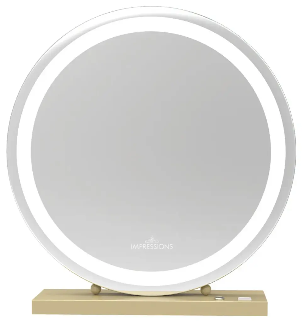 Impressions Vanity Hollywood Venus Makeup Mirror with LED Bulbs, known as the goddess of love and beauty shines brighter than all in the sky. Grace your space with a beautiful masterpiece that you will love let your inner goddess shine through. The spectacular Hollywood Venus LED Makeup Mirror includes a long-lasting LED strip light equipped with one control button. The control button located at the base of the mirror provides three separate functions turn the mirror on and off, change light tones, and adjust brightness.Features:ROUND SHAPE: This round shaped mirror has a simple design and it can create a makeup studio environment. It helps to give you the perfect makeup look. This mirror has included a power adapterLIGHTED MIRROR: This Hollywood mirror comes with a long lasting led strip light and it has 3 light color temperatures. So, do not worry about your makeup meltingSURFACE BASE MIRROR: This face mirror comes with a rectangular surface that provides strong standing. Also, this base holds the mirror on both sides with 2 round balls which makes the mirror more protectiveONE CONTROL BUTTON: This mirror has included one control button. This button is located at the base of the mirror and it provides 3 separate functions such as changing light tones, turning the mirror on or off, and adjusting the brightness