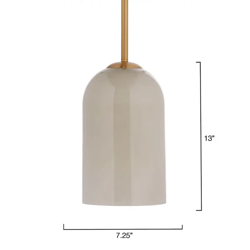 Suspended from a delicate yet solid antique brass rod, this pendant lamp features a hand-blown glass shade in soft taupe that diffuses the light from its bulb to provide easy illumination. A perennially popular style, the only thing that can improve its classically chic lines is when it is multiplied! Try hanging in pairs or sets of three.