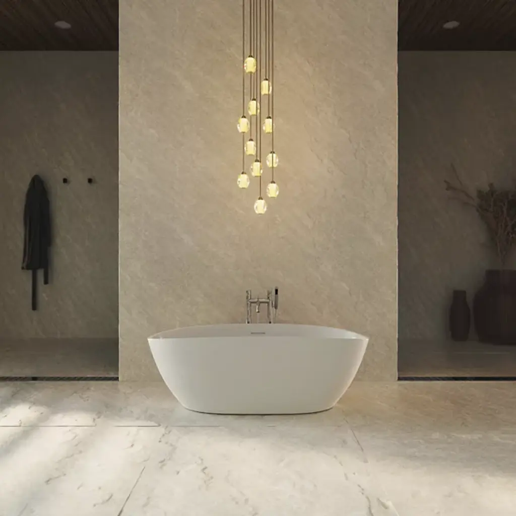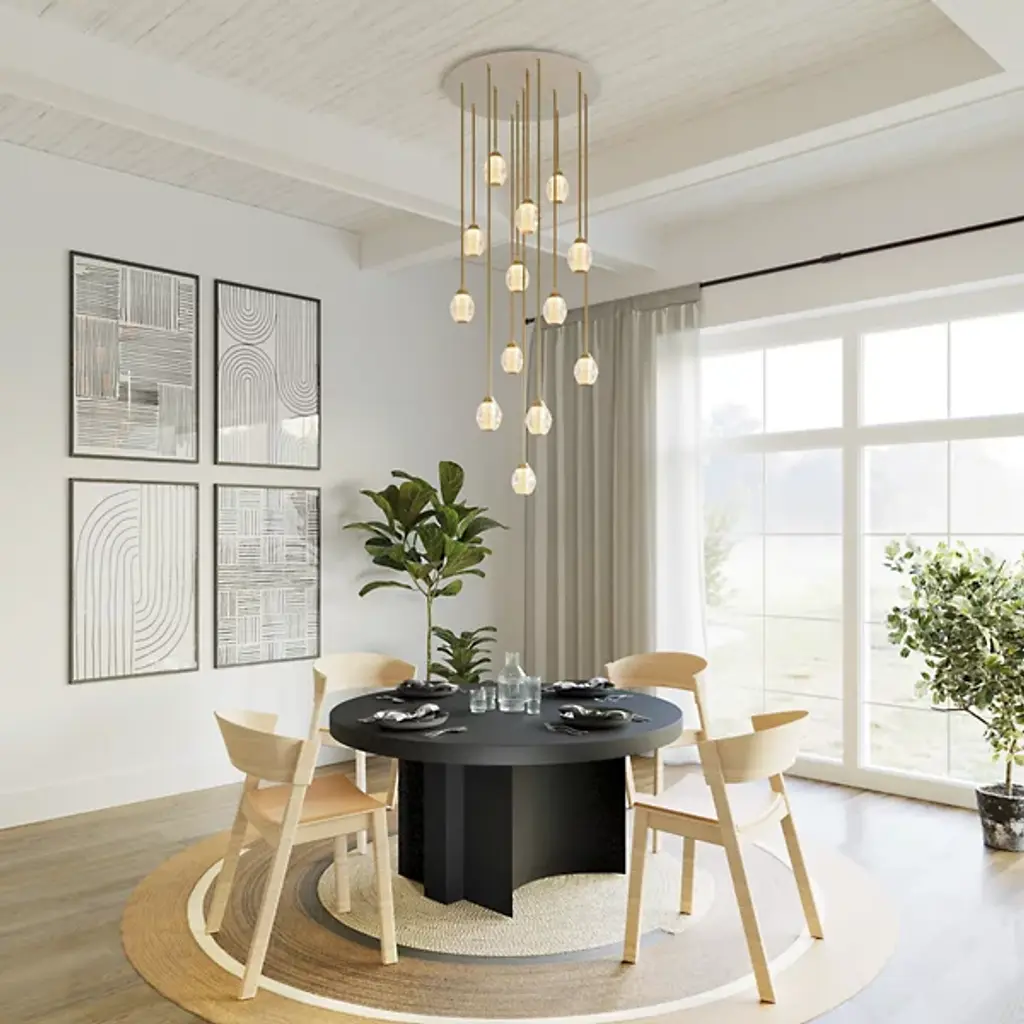 The Honey Comb Multi-Light Pendant by Shakuff features a modern design inspired by the craftsmanship of honey bees. Its faceted exterior and rich, bubbled glass center create a sophisticated and natural aesthetic. Each pendant is crafted from thick, hand-molded, laser-cut glass for impeccable precision. Illuminated by an LED COB light at the top, it produces a warm, inviting glow. This pendant makes a bold statement in any contemporary setting, enhancing the ambiance with elegance.