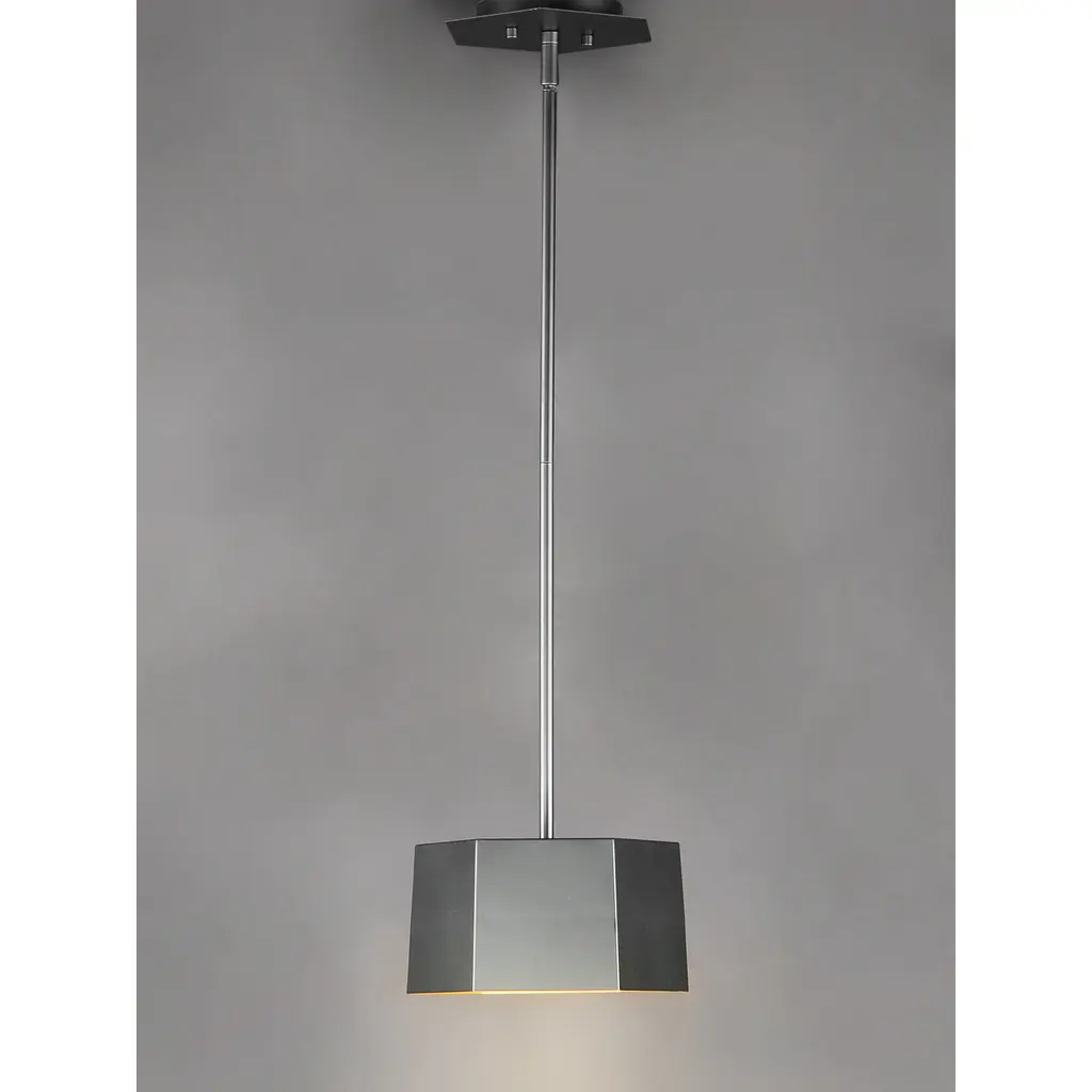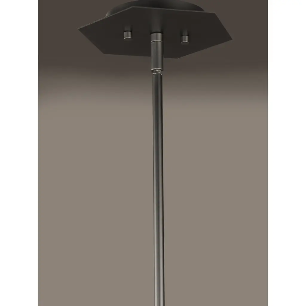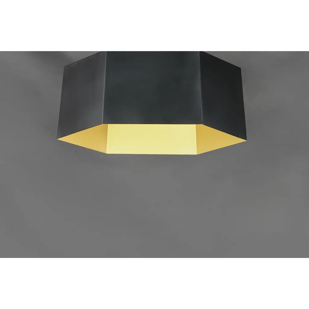 A series of hexagonal metal shades are slightly tapered to create a gentle arc when suspended together. The dramatic combination of Black with Gold interior adds flair to this unique and bold design. Ample illumination is provided by high power integrated LED and softened by acrylic diffusers recessed into each compartment.