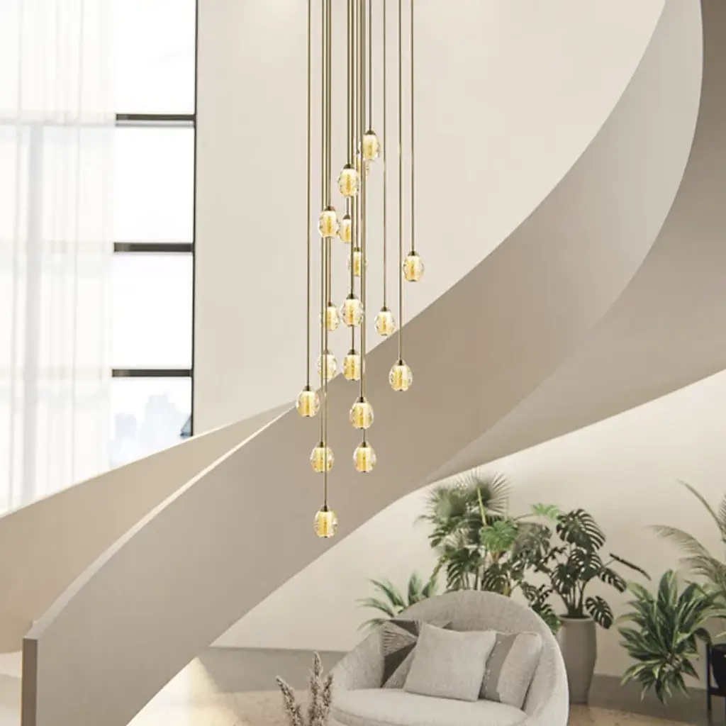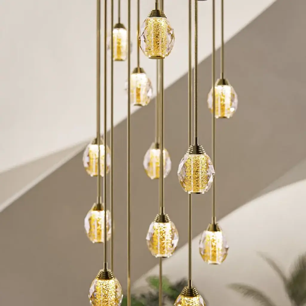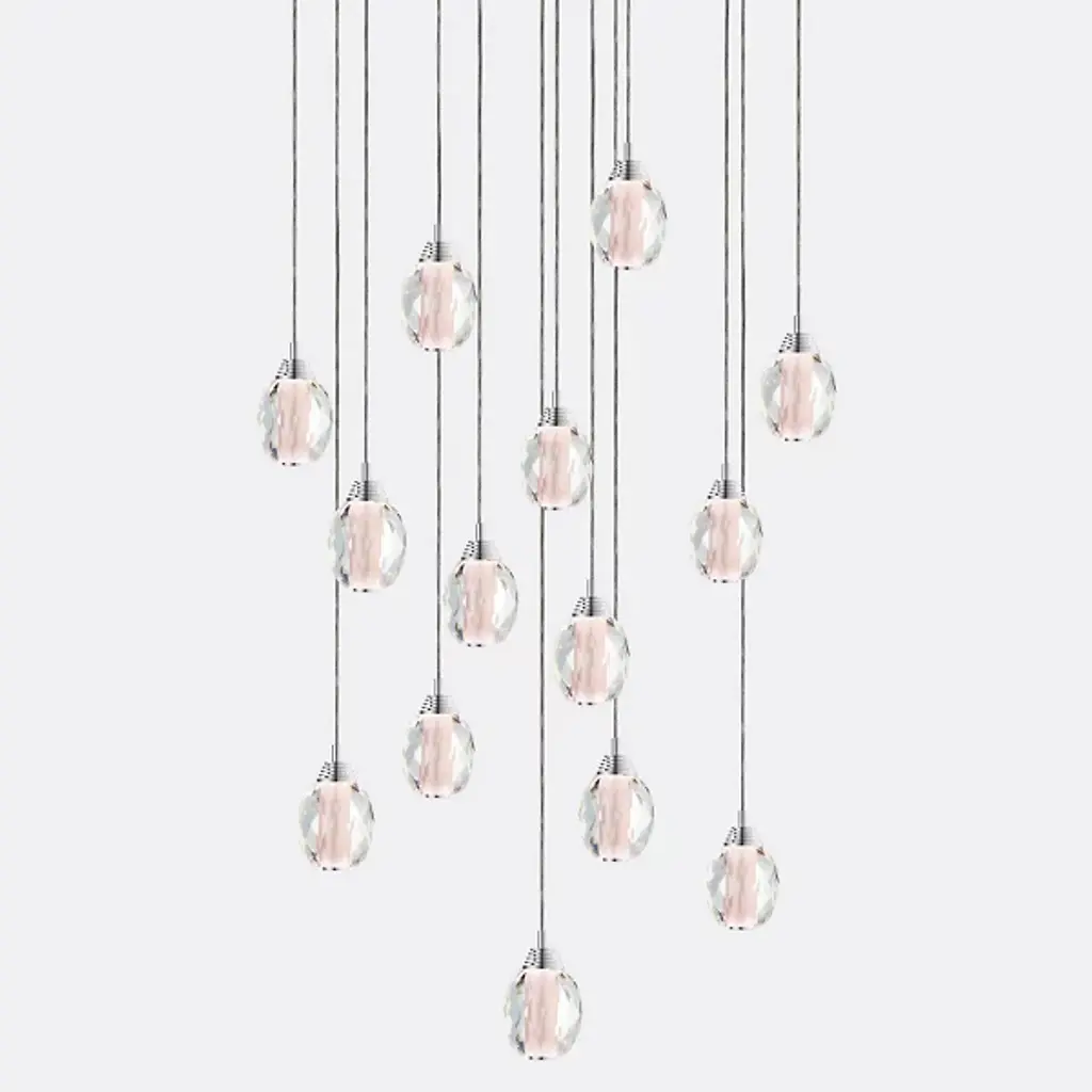 The HoneyComb Square Multi-Light Pendant from Shakuff offers an elegant, orderly ensemble of indoor light best suited to large, high-ceilinged spaces. Inspired by the orderly homes of the humble honeybee, it suspends a series of small, strong lamps via slender cables from a square canopy. Artisan-made with small metal elements and featuring lamping mellowed by thick, round shades of hand-blown, laser-cut glass, the lamps are suspended at different heights, creating a layered, warm radiance enhanced by the diamond-like facets around the bubbled glass of the shade’s center.