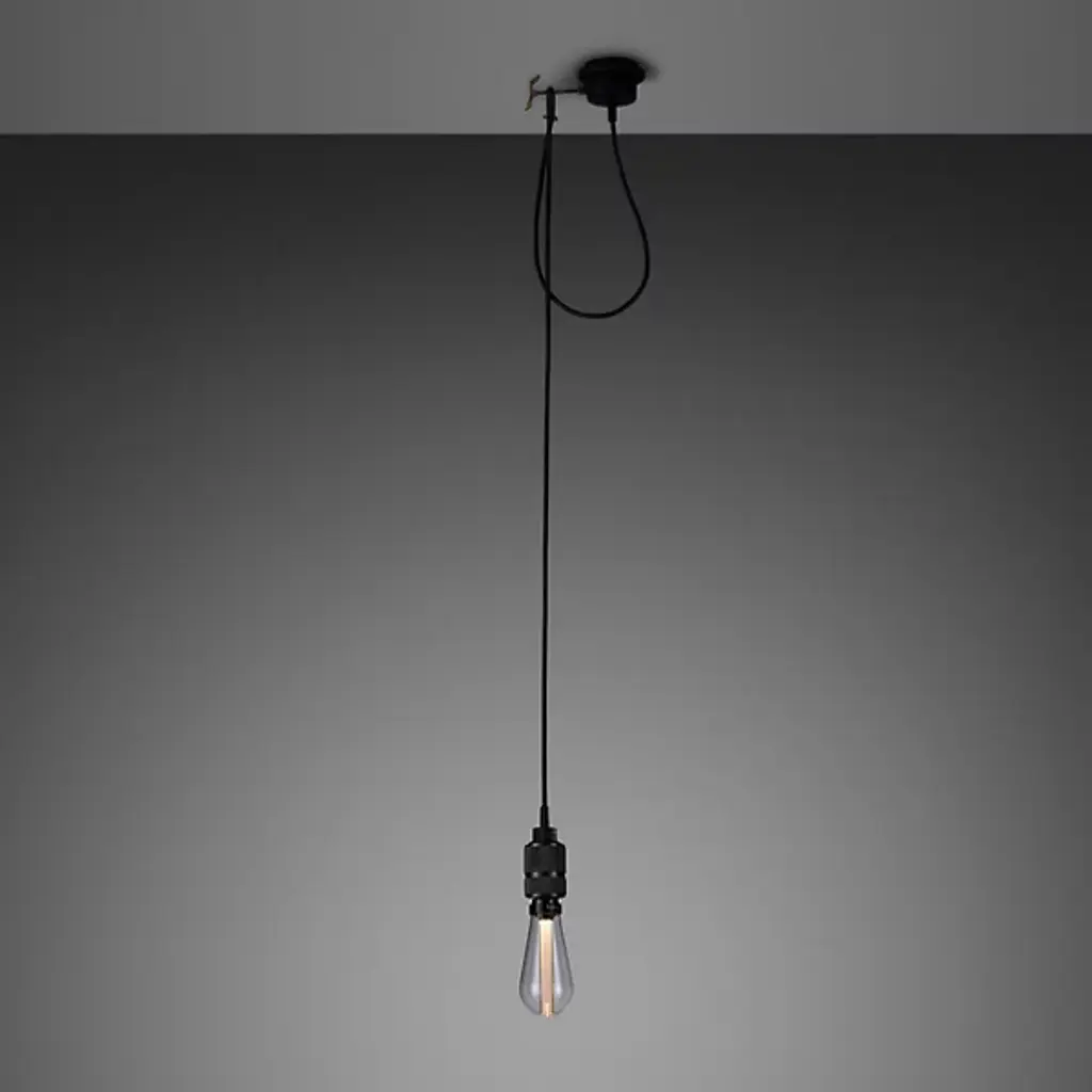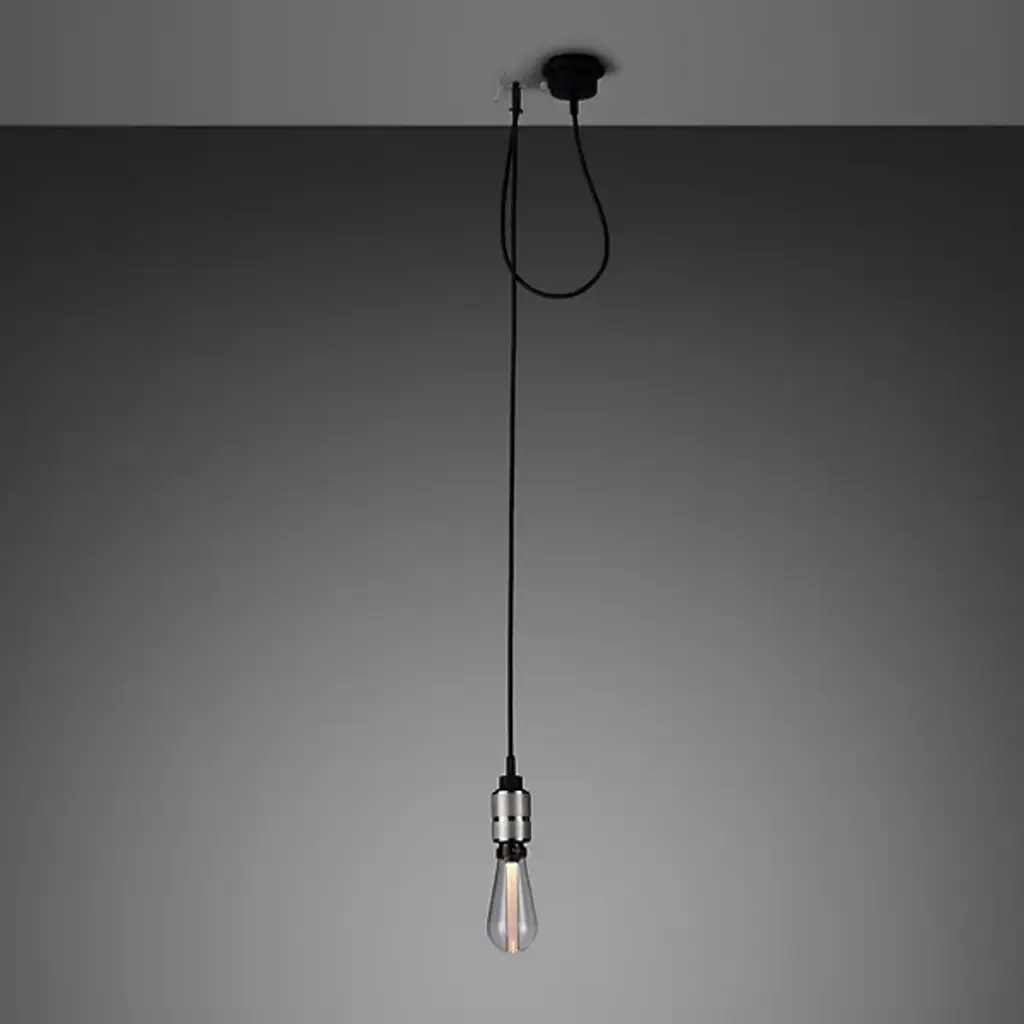 The Hooked 1.0 Nude Mini Pendant from Buster + Punch presents an artful industrial accent to interiors. Able to suspend vertically from ceilings or reach out horizontally from a wall, its circular housing extends a steel hook out to the side, retaining the looped cord while suspending a knurled accent around an open lower cylinder. It pops with a Buster bulb, shining out a wide warmth to all sides while the textured accents of the knurling demand attention.