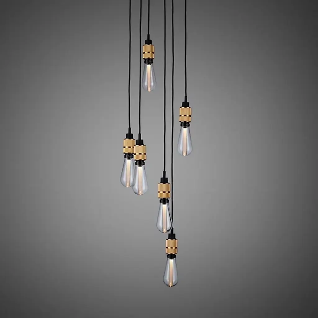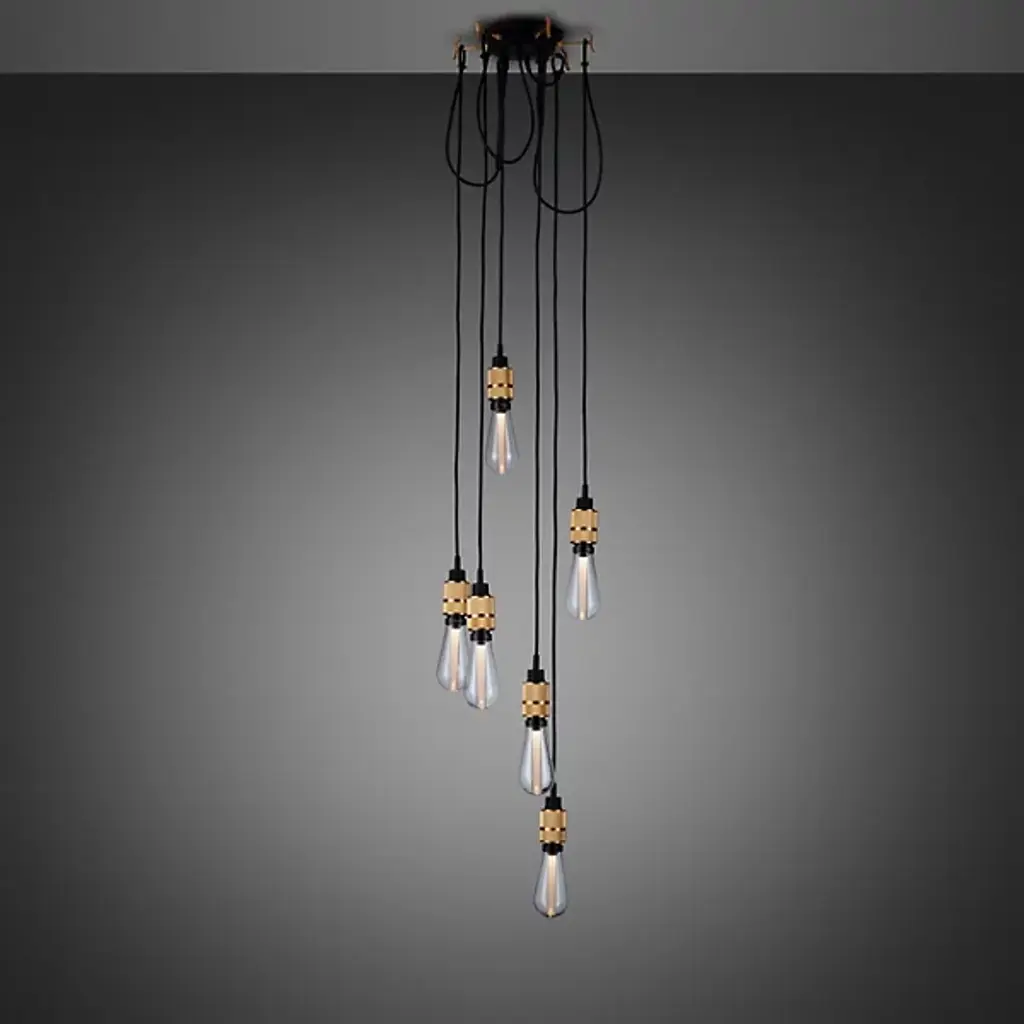 Provide intriguing industrial appeal to indoor ceilings with the Hooked 6.0 Nude Multi-Light Pendant from Buster + Punch. A round canopy keeps the fixture in place, extending solid metal hooks at even intervals to support long strands of cord at any customizable length. Each cord drops to a single open socket accompanied by a knurled collar. The customizable nature of the fixture lends it a pleasing sculptural air accompanied by a robust direct design, casting a multilayered warmth out around the fixture