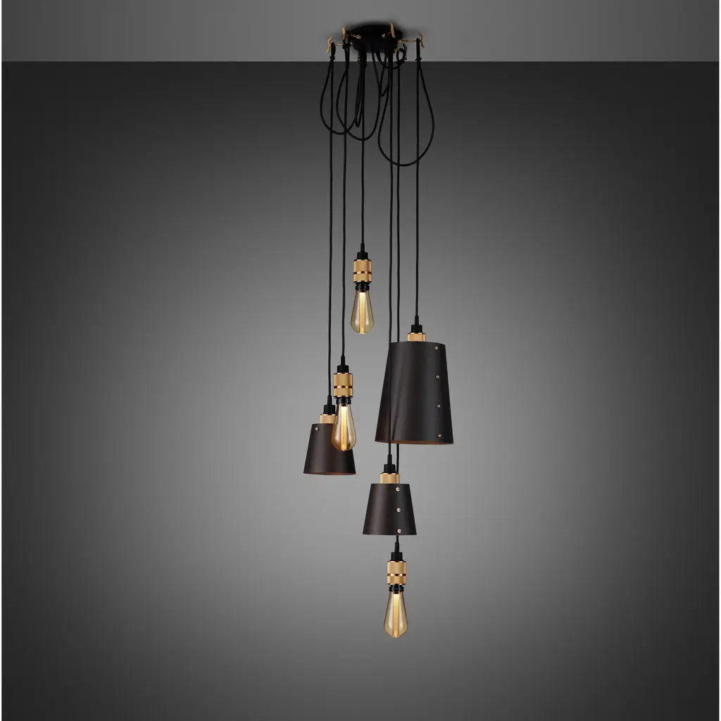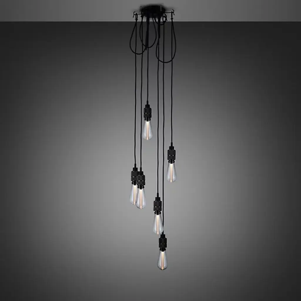 Provide intriguing industrial appeal to indoor ceilings with the Hooked 6.0 Nude Multi-Light Pendant from Buster + Punch. A round canopy keeps the fixture in place, extending solid metal hooks at even intervals to support long strands of cord at any customizable length. Each cord drops to a single open socket accompanied by a knurled collar. The customizable nature of the fixture lends it a pleasing sculptural air accompanied by a robust direct design, casting a multilayered warmth out around the fixture