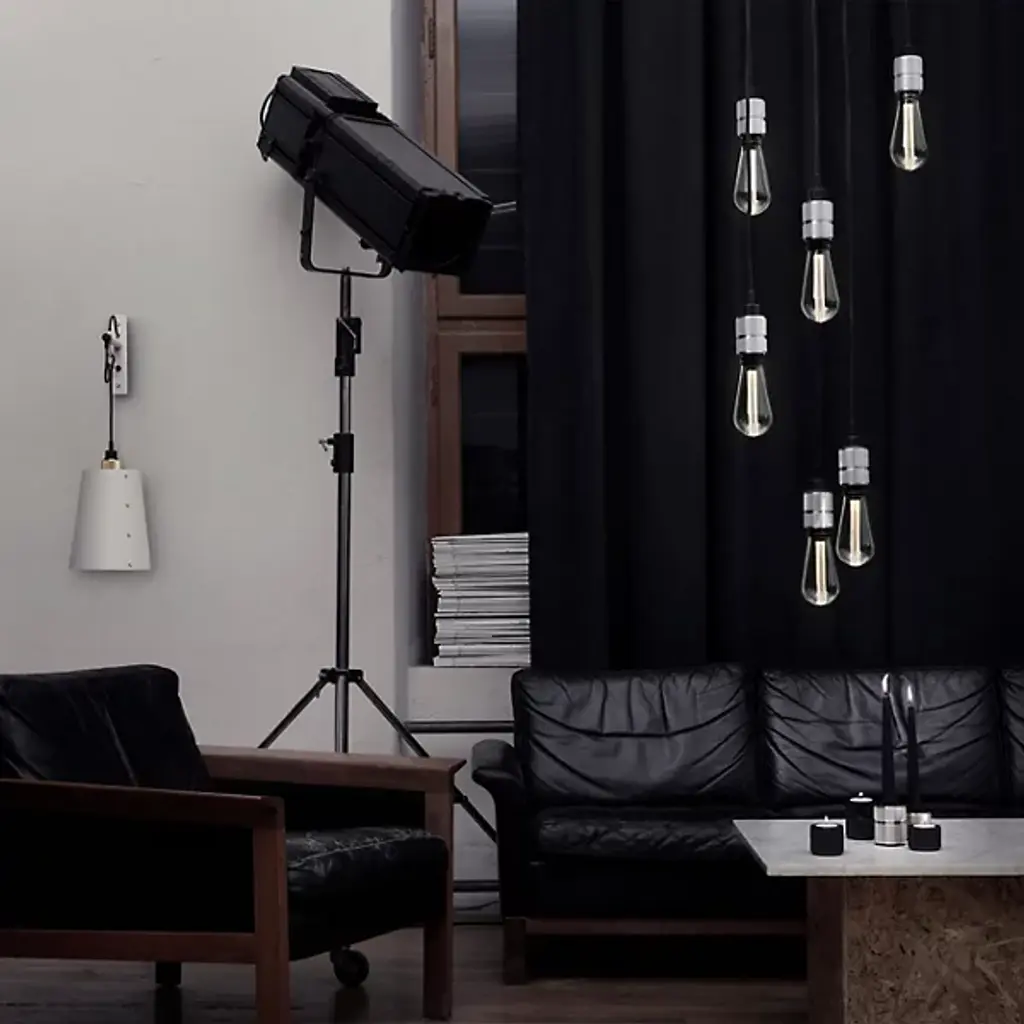 Provide intriguing industrial appeal to indoor ceilings with the Hooked 6.0 Nude Multi-Light Pendant from Buster + Punch. A round canopy keeps the fixture in place, extending solid metal hooks at even intervals to support long strands of cord at any customizable length. Each cord drops to a single open socket accompanied by a knurled collar. The customizable nature of the fixture lends it a pleasing sculptural air accompanied by a robust direct design, casting a multilayered warmth out around the fixture