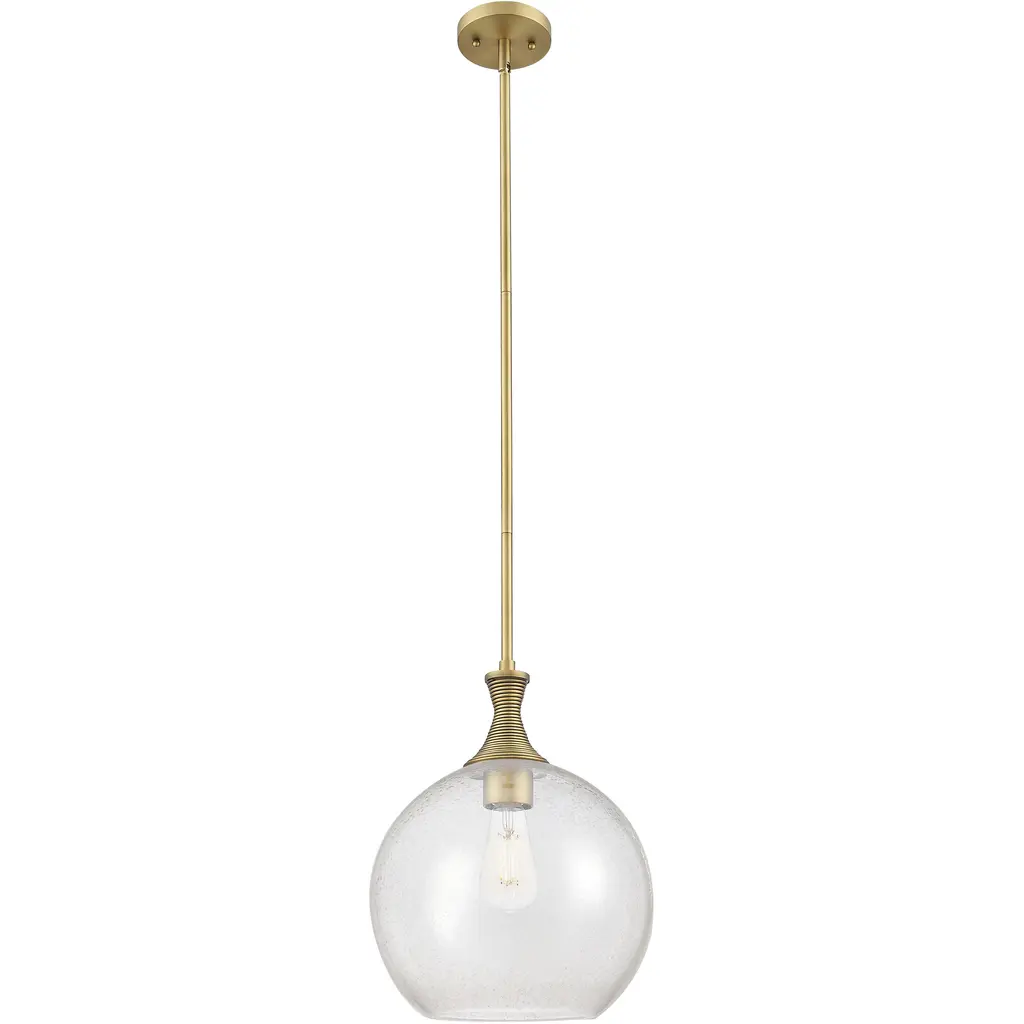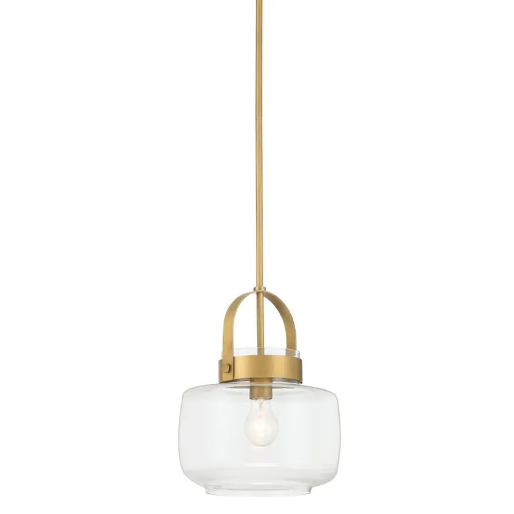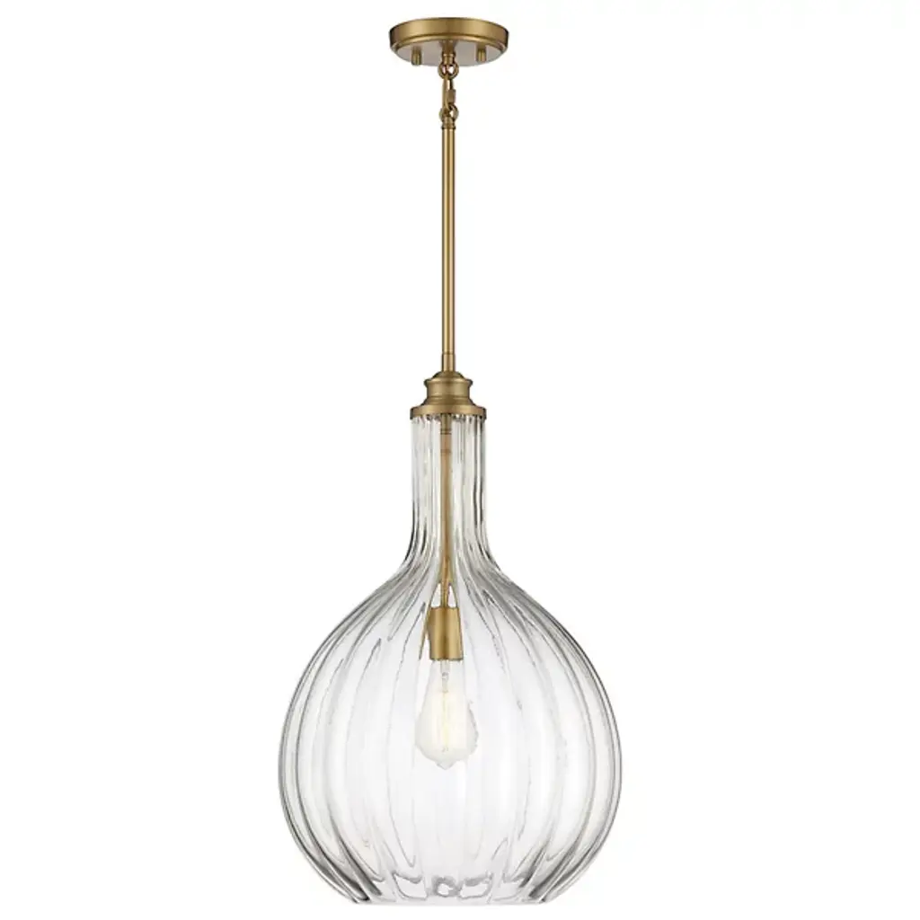 Add a clean, modern accent to your inside living spaces with the Horizon Pendant from Robert Abbey. A simple and stylish fixture, it suspends a single metal stem from a stepped ceiling mount and finial, transitioning down to a single socket set inside a naturally-curved, segmented take on more classic beehive glass designs. This tiered shade cuts direct glare, transforming it into a blaze of light that suffuses its surroundings with a warm, welcome glow.