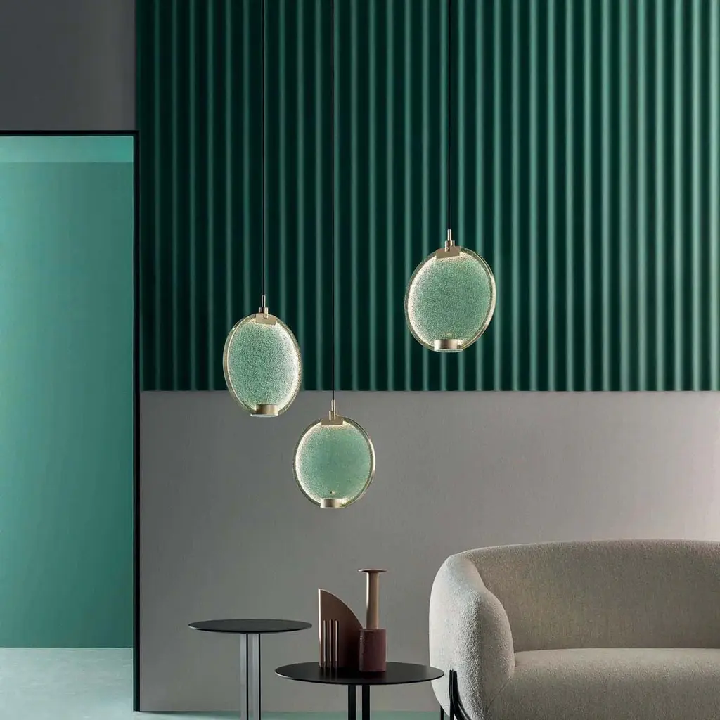 The Horo LED Multi-Light Pendant Light from Masiero is a stylish addition to any modern home. Crafted in Italy with, the sleek prism glass disc canopy creates a classic yet modern silhouette, while integrated LED lighting softly diffuses a warm, inviting glow. Highlights