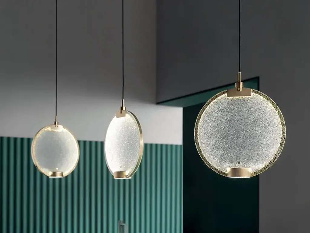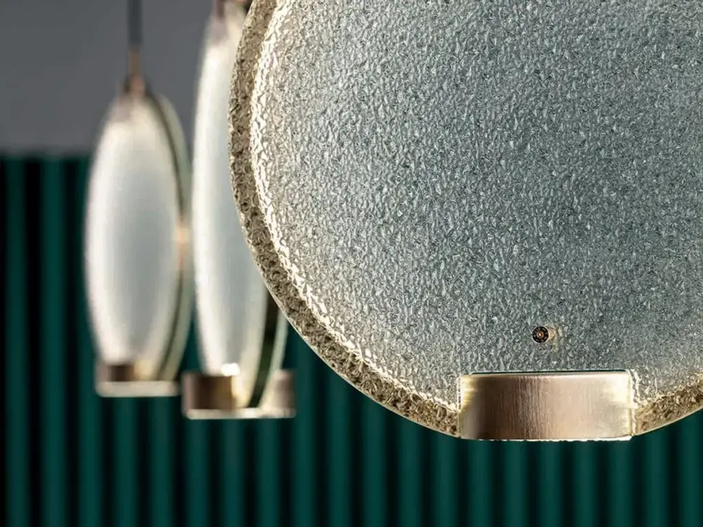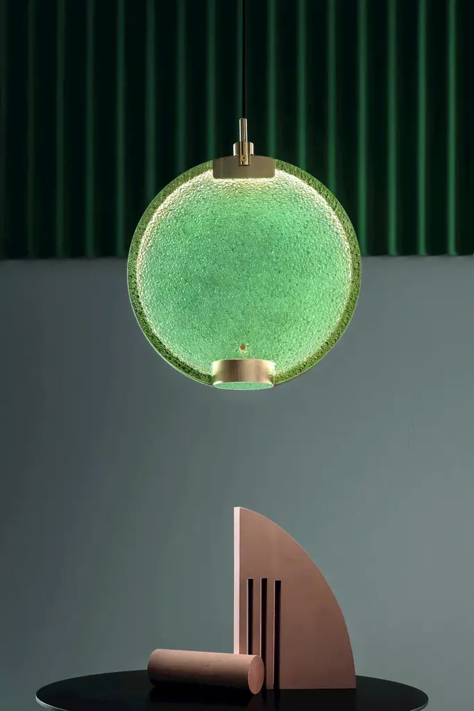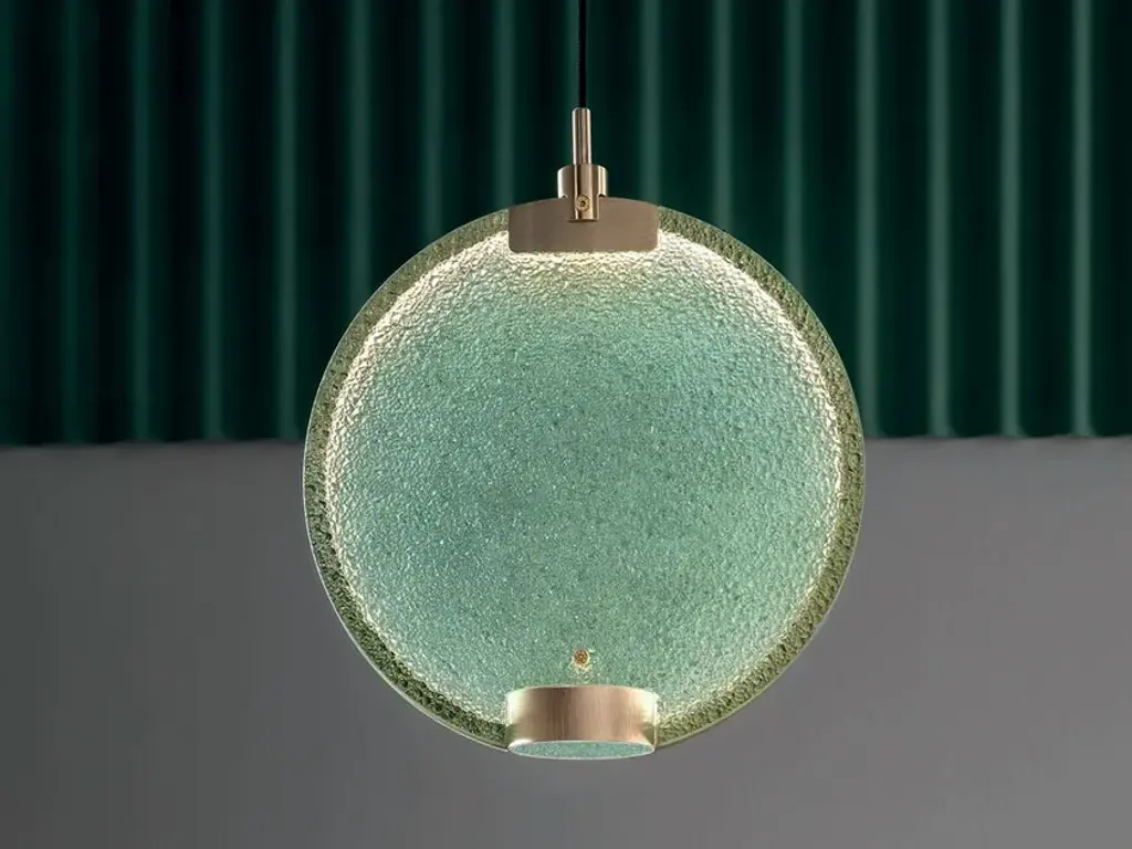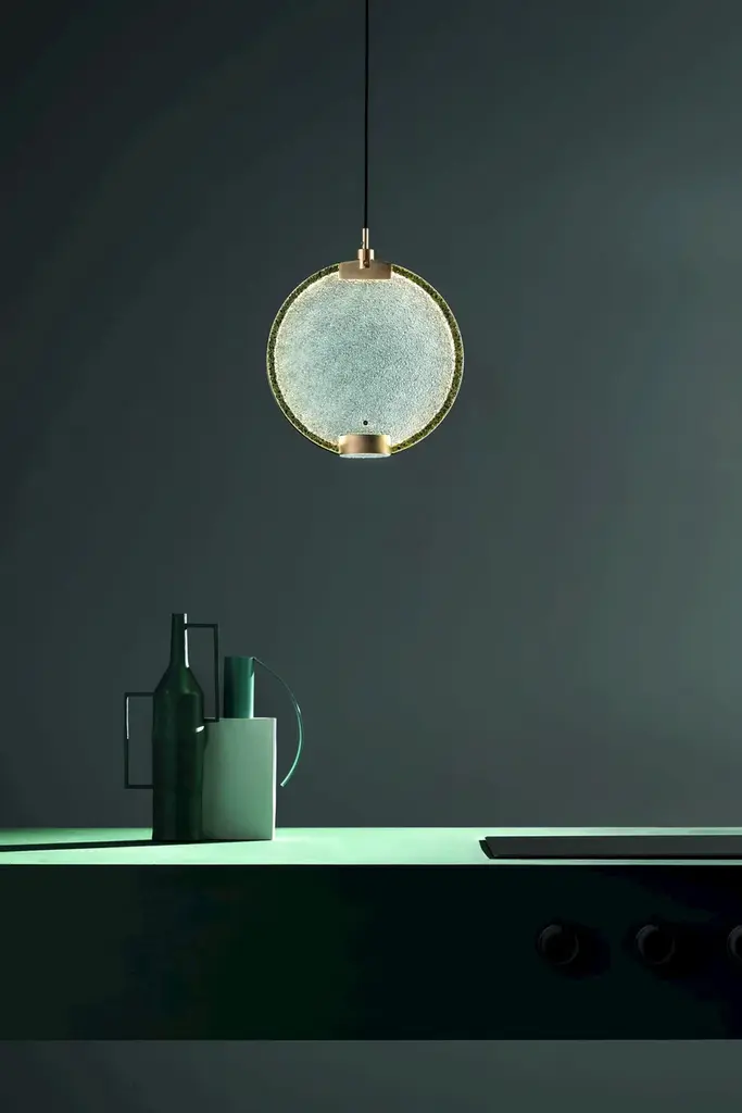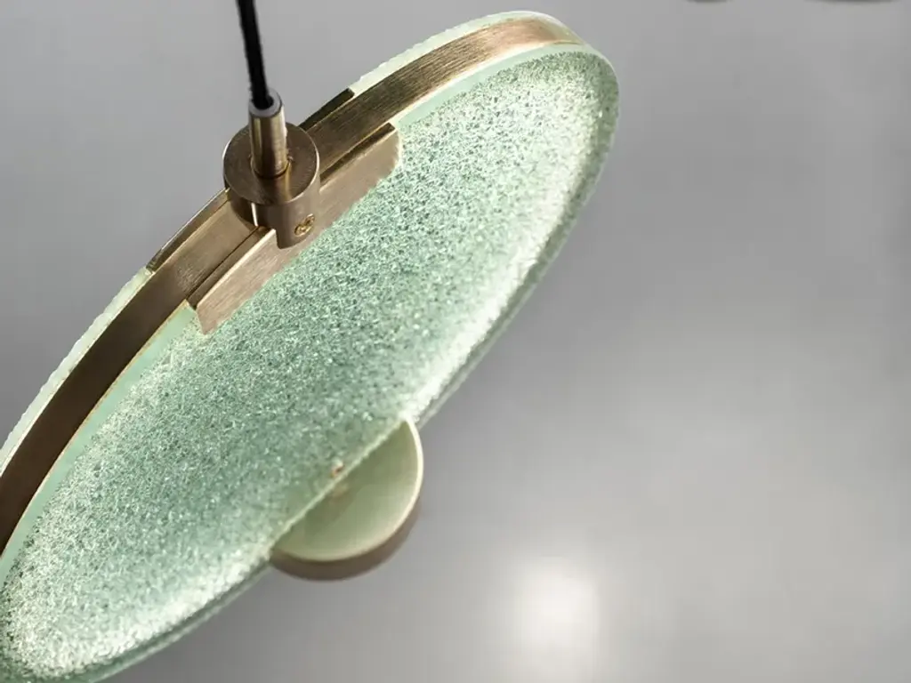 Horo S1 is a single pendant lamp. Made in glass and brushed brass. Glass available in different colors. Lamp for contract, hotels and offices.LED x 14.4 W CRI>95 not dimmable.Electrical characteristicsLED 14,4W CRI>95 3000K 1536LMLED 14,4W CRI>95 2700K 1464LMDIMMABLE: NOCE LEDETL LEDCCC LEDCB SCHEME LEDThe disc of light is a symbol as old as the world, a universal symbol and endless source of inspiration. Pierre Gonalons, who is very fond of the shape of the circle, with references ranging from the Egyptian god Ra, to the golden sun, to the eye of Horus, has conceived a collection of suspension, floor, wall and table lamps: Horo. "The combination of finishes and colours strikes an excellent balance between being inspired by Italian design from the 1950s and designing innovative, very contemporary proposals," says Pierre Gonalons. The Horo collection is designed to scenically illuminate both residential and contract spaces.