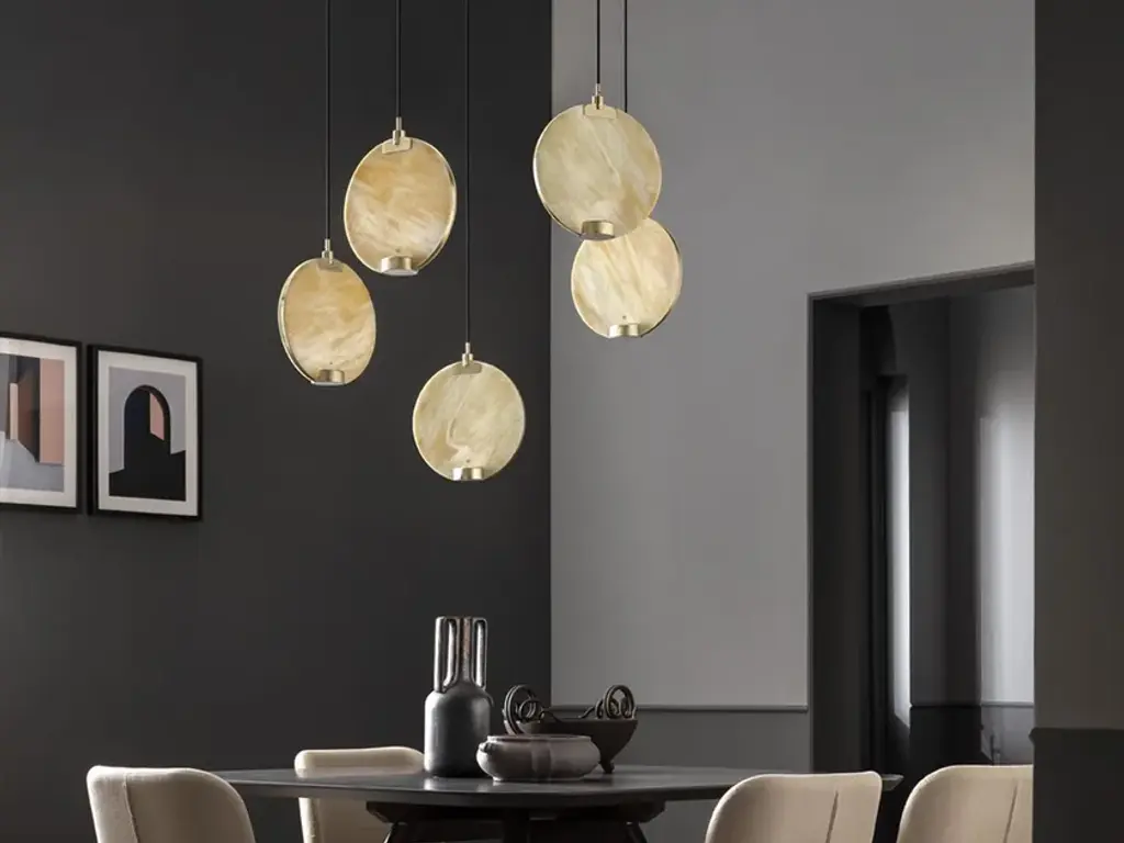 Horo S5 is a LED glass pendant lamp.Electrical characteristicLED 72W CRI>95 3000K 7680LMLED 72W CRI>95 2700K 7320LMDIMMABLE: 0-10VCE LEDETL LEDCCC LEDCB SCHEME LEDThe disc of light is a symbol as old as the world, a universal symbol and endless source of inspiration. Pierre Gonalons, who is very fond of the shape of the circle, with references ranging from the Egyptian god Ra, to the golden sun, to the eye of Horus, has conceived a collection of suspension, floor, wall and table lamps: Horo. "The combination of finishes and colours strikes an excellent balance between being inspired by Italian design from the 1950s and designing innovative, very contemporary proposals," says Pierre Gonalons. The Horo collection is designed to scenically illuminate both residential and contract spaces.