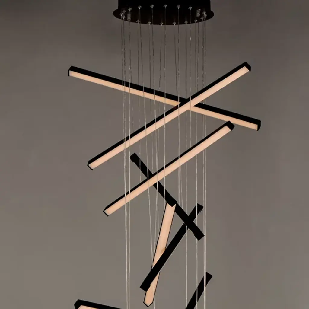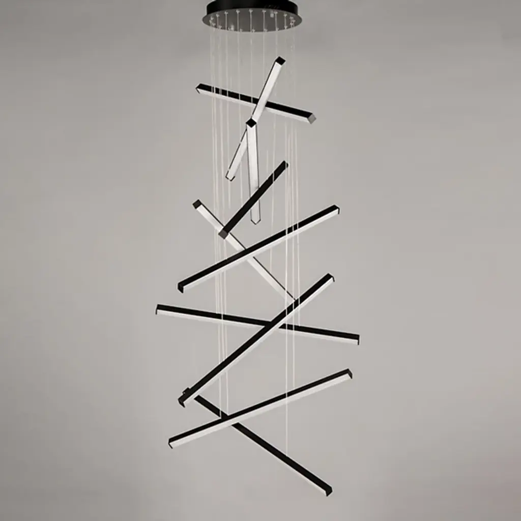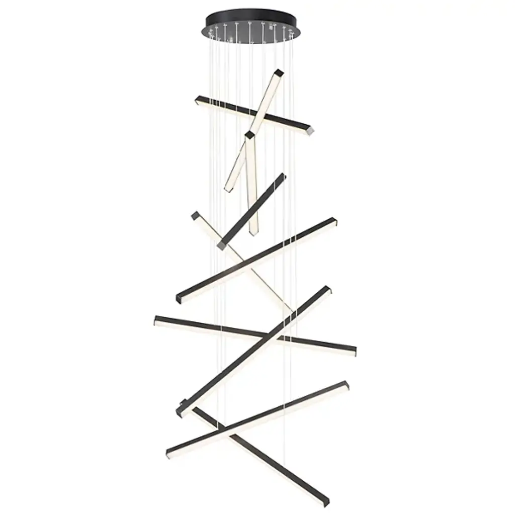 The Hover 10 Light Multi Light LED Pendant from ET2 Lighting invites you to express your creativity. Immerse yourself in the artistic process with this pendant, crafted from extruded aluminum. Featuring minimalist batons fitted with V-shaped acrylic diffusers, Hover creates a wider beam of light that sets the stage for a balletic light presentation. Experience the brilliance of 10 lights coming together in one place. Adjust the ambiance to your preferences by pairing Hover with an ELV or TRIAC dimmer.