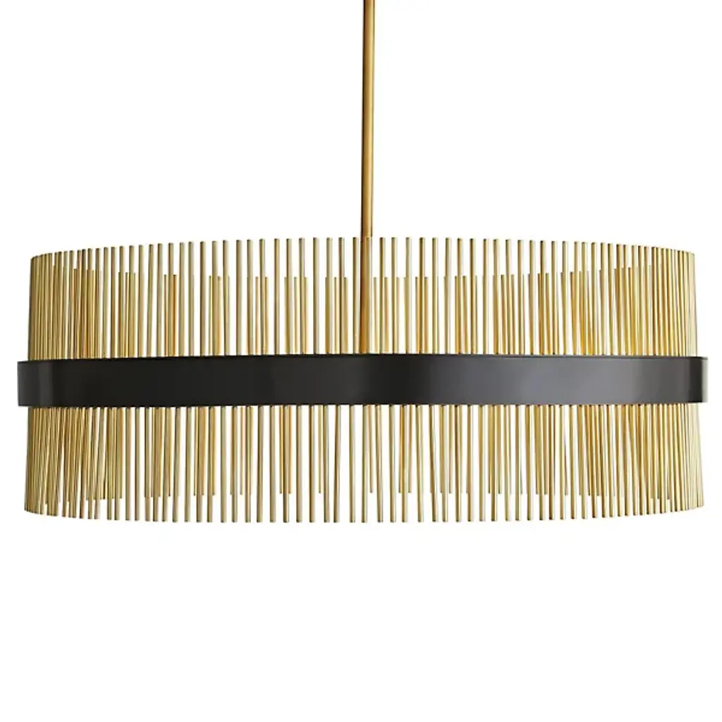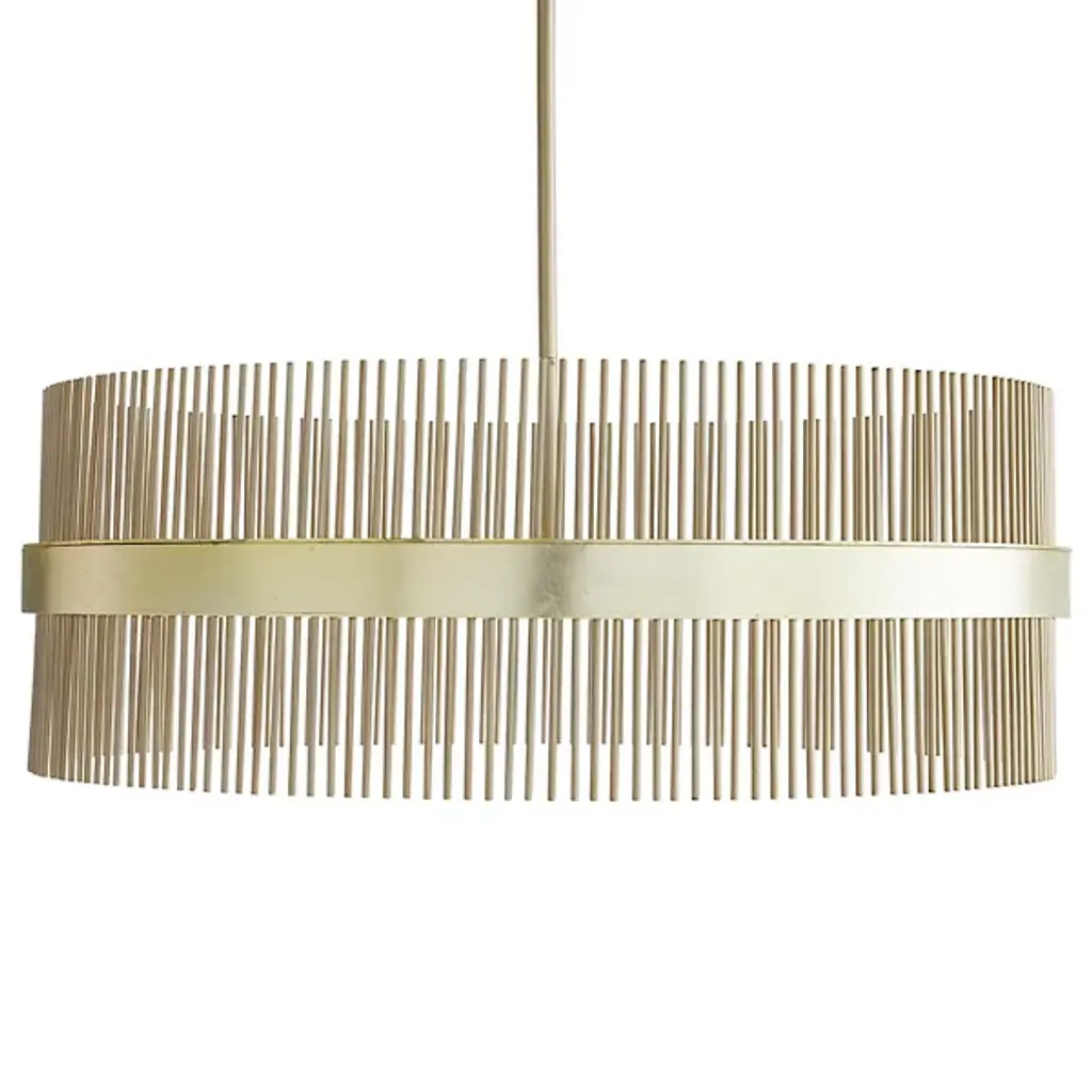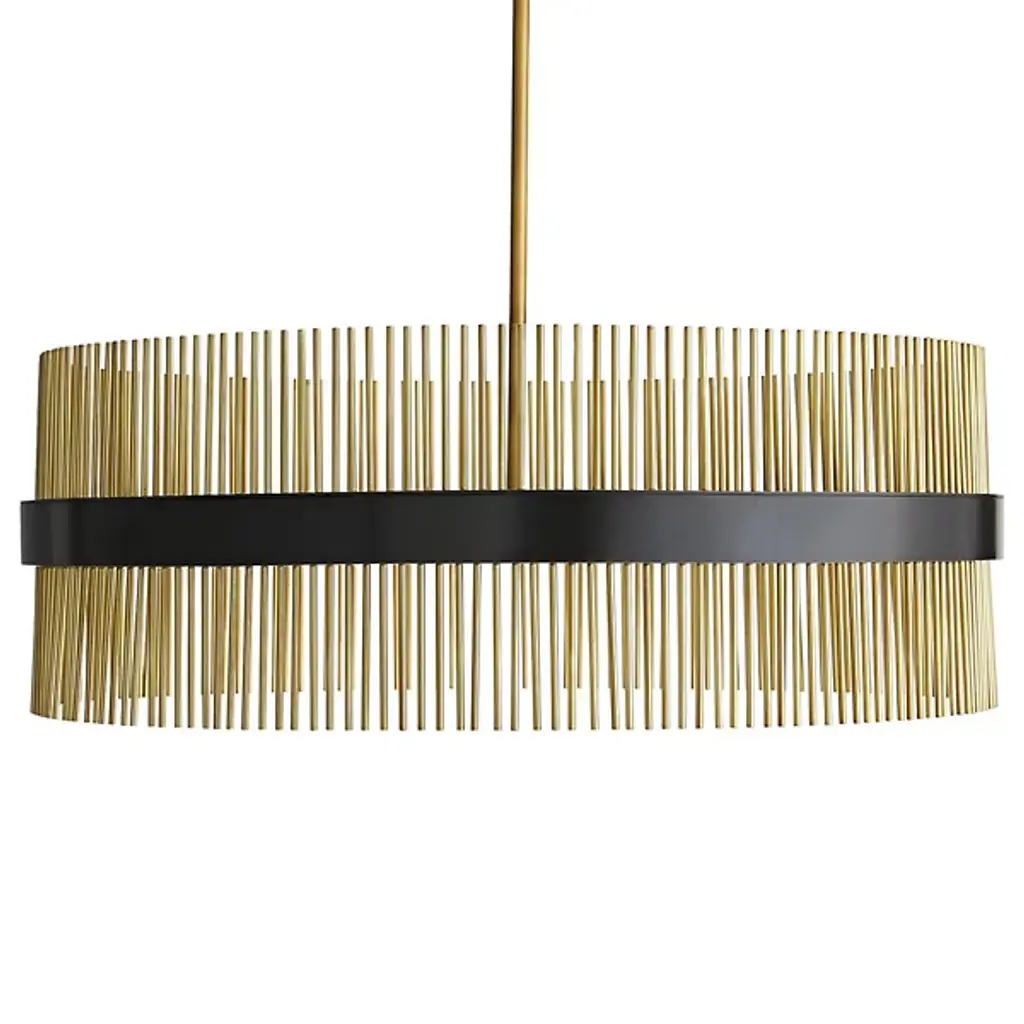 A modern sculptural design that brings a sense of grandeur to spaces. The Hozier Drum Pendant by Arteriors features a distinct circular shade formed by hundreds of slender stainless steel tubes for visual interest and texture. Its interior ring is fitted with horizontal lightbulb sockets around it to create a unique lighting effect. Striking suspended above a dining table or seating area, this contemporary ceiling fixture can be adjusted to hang just so.