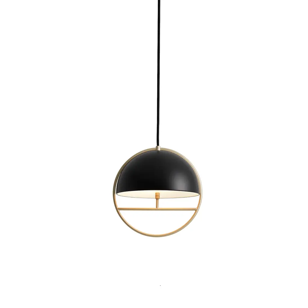 With clean lines and graceful proportions, the Huan Pendant is a timeless design that embodies both modern forms with a nostalgic silhouette. The round circular frame is inspired by the Moon Gate, which is a classic architectural element common in oriental gardens. The hemisphere lamp shade seamlessly integrates with the circular frame, bringing warmth and serenity to any interior. The Huan Pendant is available in Matt Black or Matt White, and in two convenient sizes. With clean geometry and striking symmetry, the perfectly circular frame is finely finished in our iconic Champagne Gold, providing for an everlasting cozy glow. Features