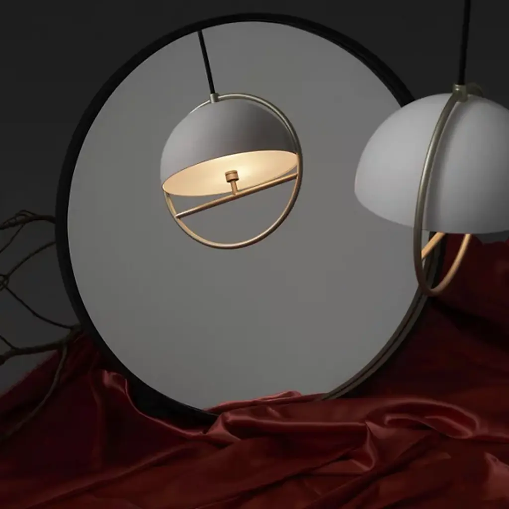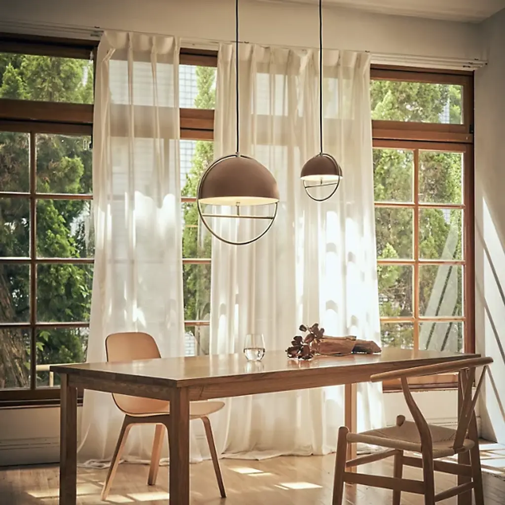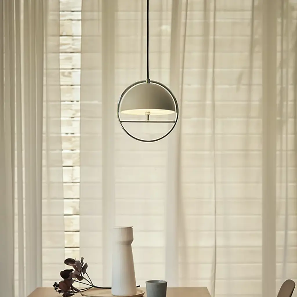 Inspired by the tone-setting silhouette of the oriental garden’s moon gate. The Huan Pendant from Seed Design creates a calming atmosphere during the day with its balanced shapes and at night through its diffused light. It hangs gracefully with a slender cord that invites placement as part of a series over a table or on its own. The clean metal frame references the moon gate with a circular outline. This outline stands out thanks to its contrasting finish against the shade. The hemisphere shade shields the eye from side glare and directs light down into a soft pool of illumination.