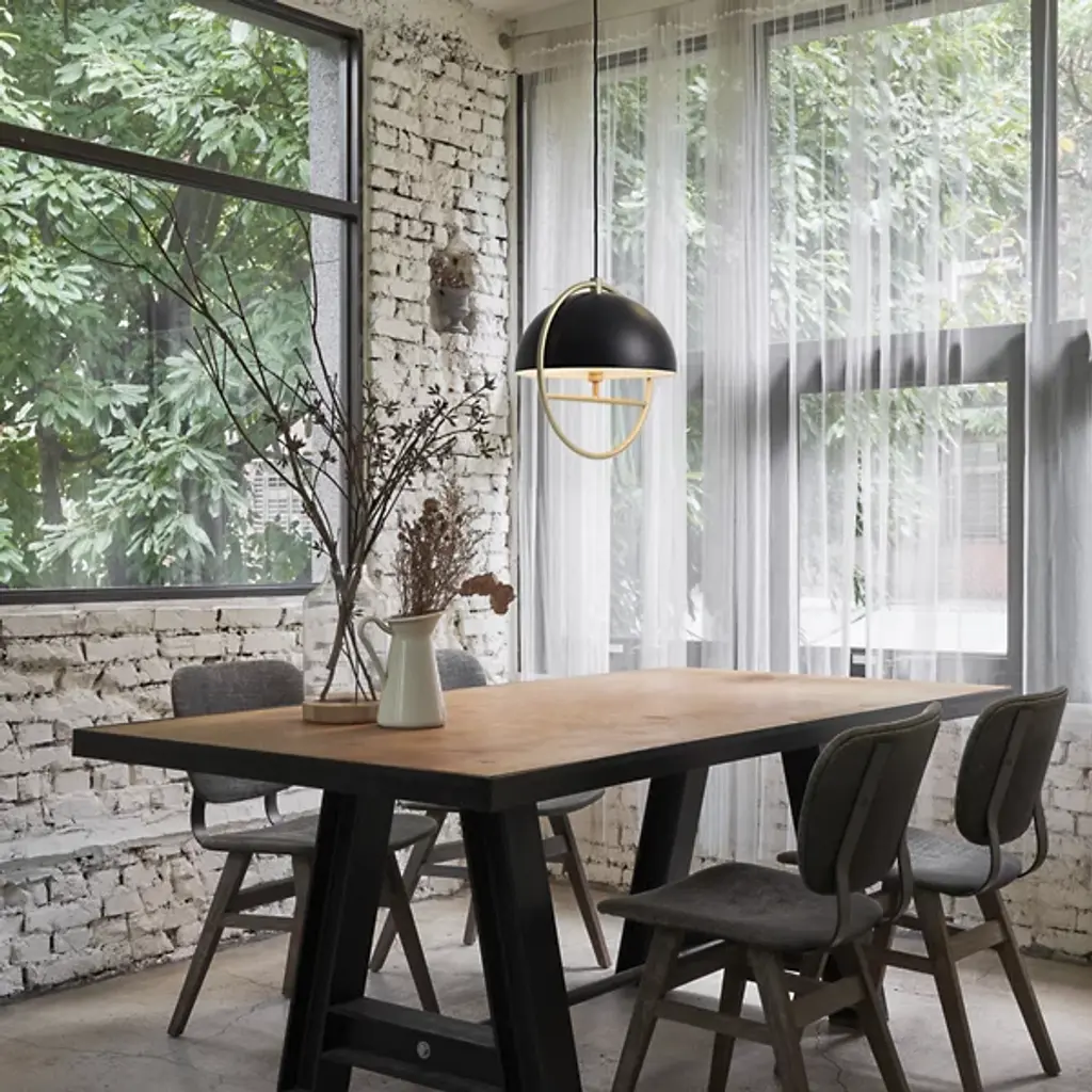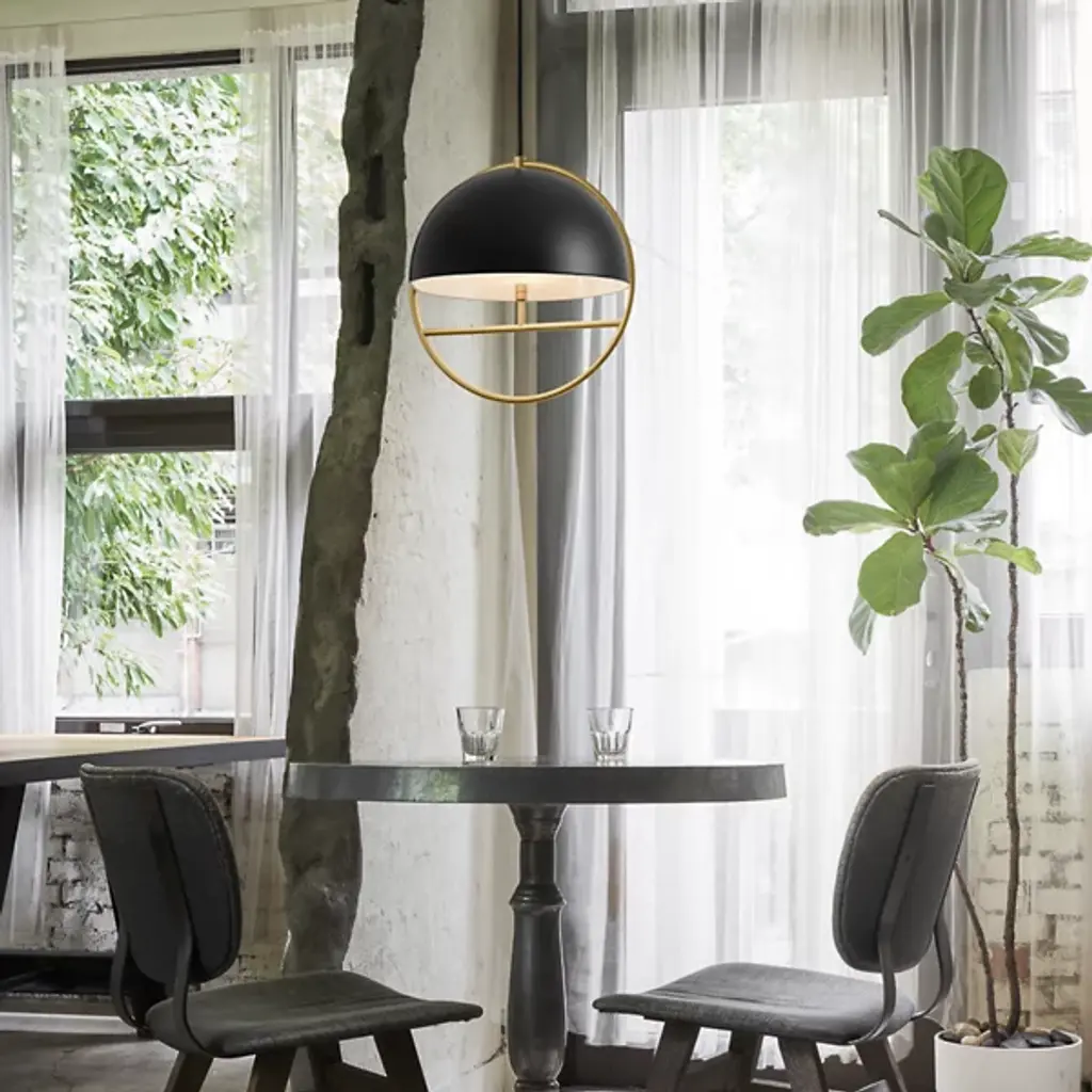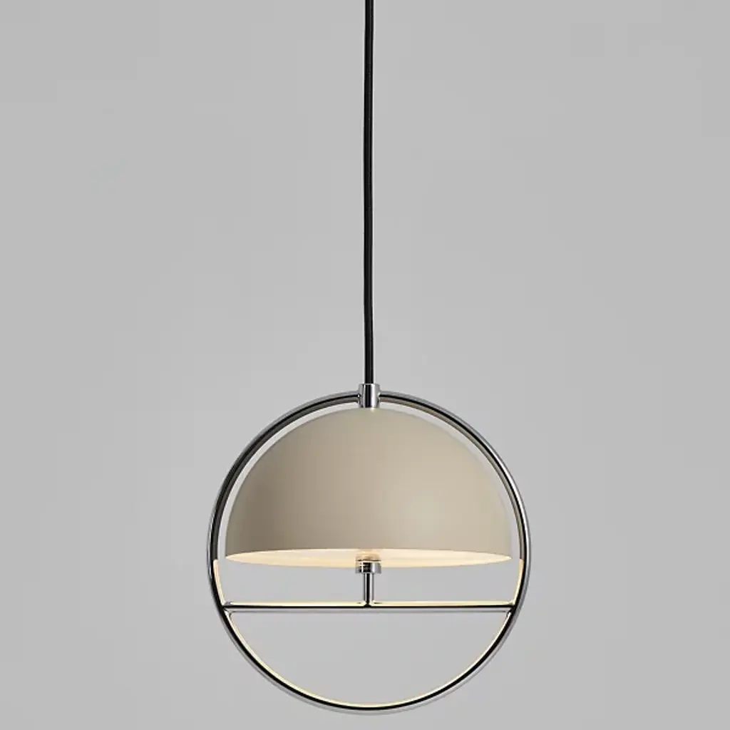 Inspired by the tone-setting silhouette of the oriental garden’s moon gate. The Huan Pendant from Seed Design creates a calming atmosphere during the day with its balanced shapes and at night through its diffused light. It hangs gracefully with a slender cord that invites placement as part of a series over a table or on its own. The clean metal frame references the moon gate with a circular outline. This outline stands out thanks to its contrasting finish against the shade. The hemisphere shade shields the eye from side glare and directs light down into a soft pool of illumination.